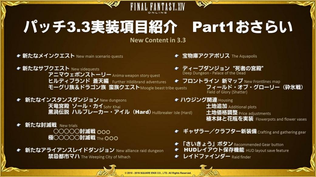 ◎パッチ3.3実装コンテンツ特集Part2