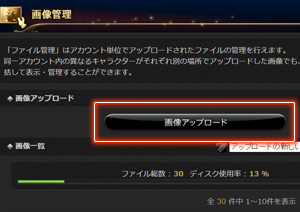 2.「画像管理」画面の【画像のアップロード】ボタンをクリックします。