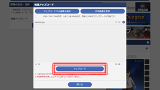 5.【アップロード】ボタンをクリックします。