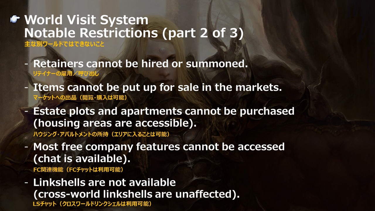 Since there are various things that can be done while inside the Destination World, we went over the restrictions you have while visiting another World.
