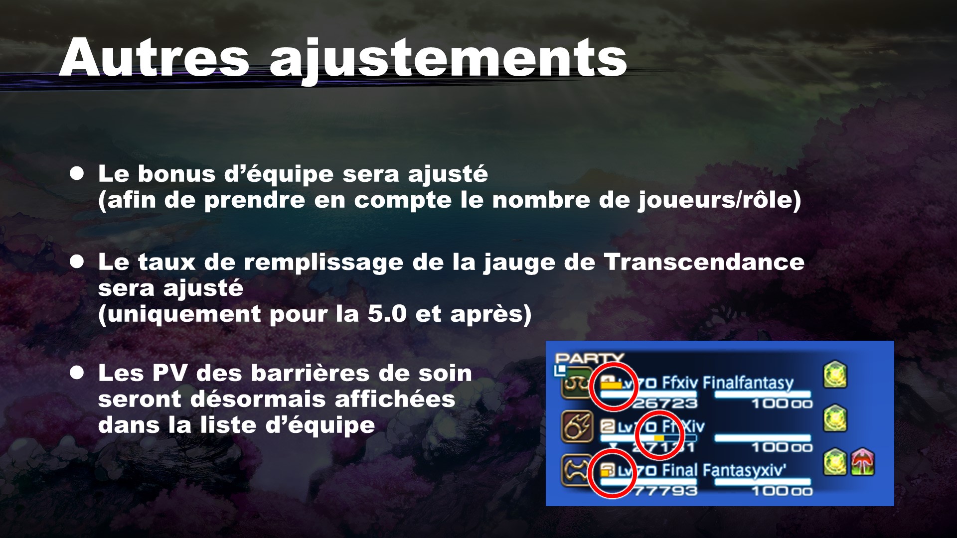 Les informations affichées dans la liste d’équipe ont été mises à jour afin de mieux voir si un membre a sa barre de PV pleine, entre autres.