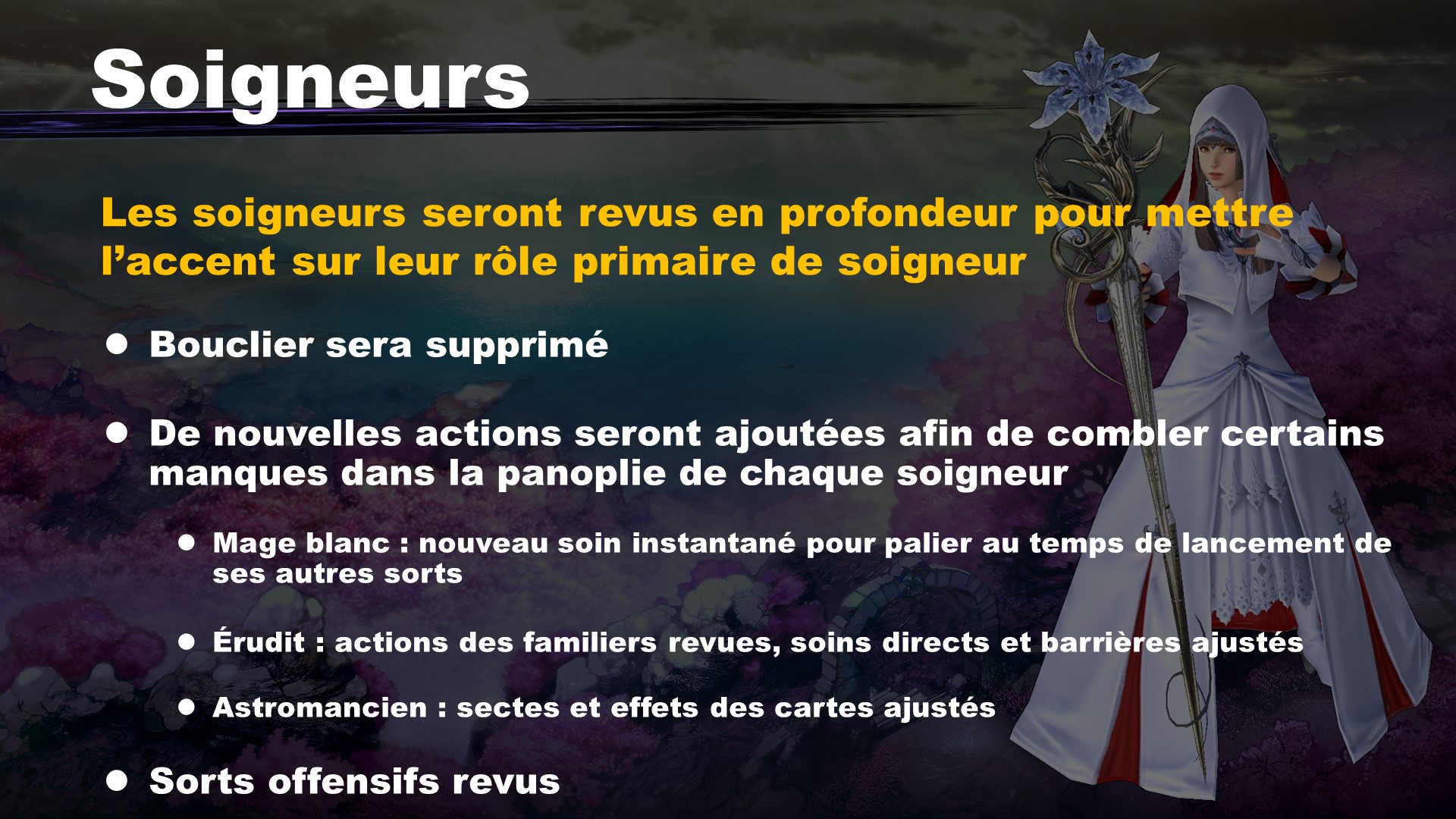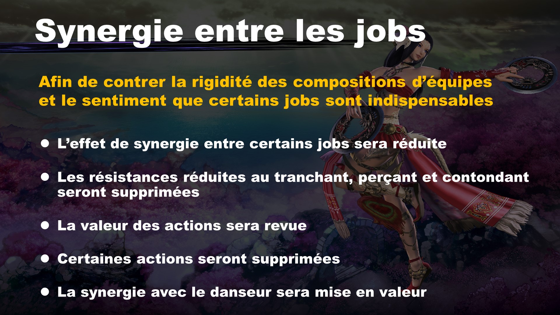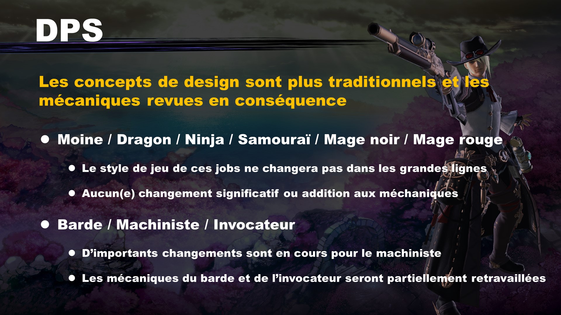 La première partie de l’émission couvre beaucoup de changements aux systèmes de jeu et de combat. La seconde parle de l’équilibrage des rôles et des jobs