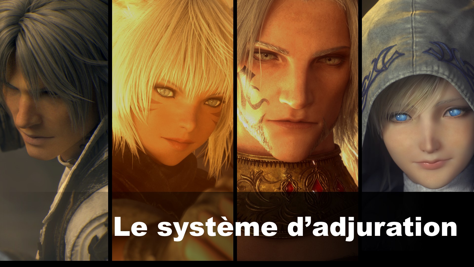 Vous pourrez former une équipe en parlant aux PNJ près de l’entrée du donjon lorsque vous y allez pour la première fois. Si vous avez déjà fini le donjon, vous pourrez former une équipe avec les PNJ en sélectionnant « Adjuration » depuis le menu principal. Vous l’avez sans doute remarqué, mais certains de vos alliés auront des noms de job unique, comme Minfilia qui est « Prêtresse de la Lumière ».