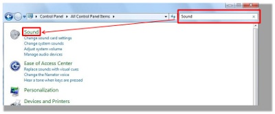 - Enter the word "Sound" in the search box, and then click on "Sound."