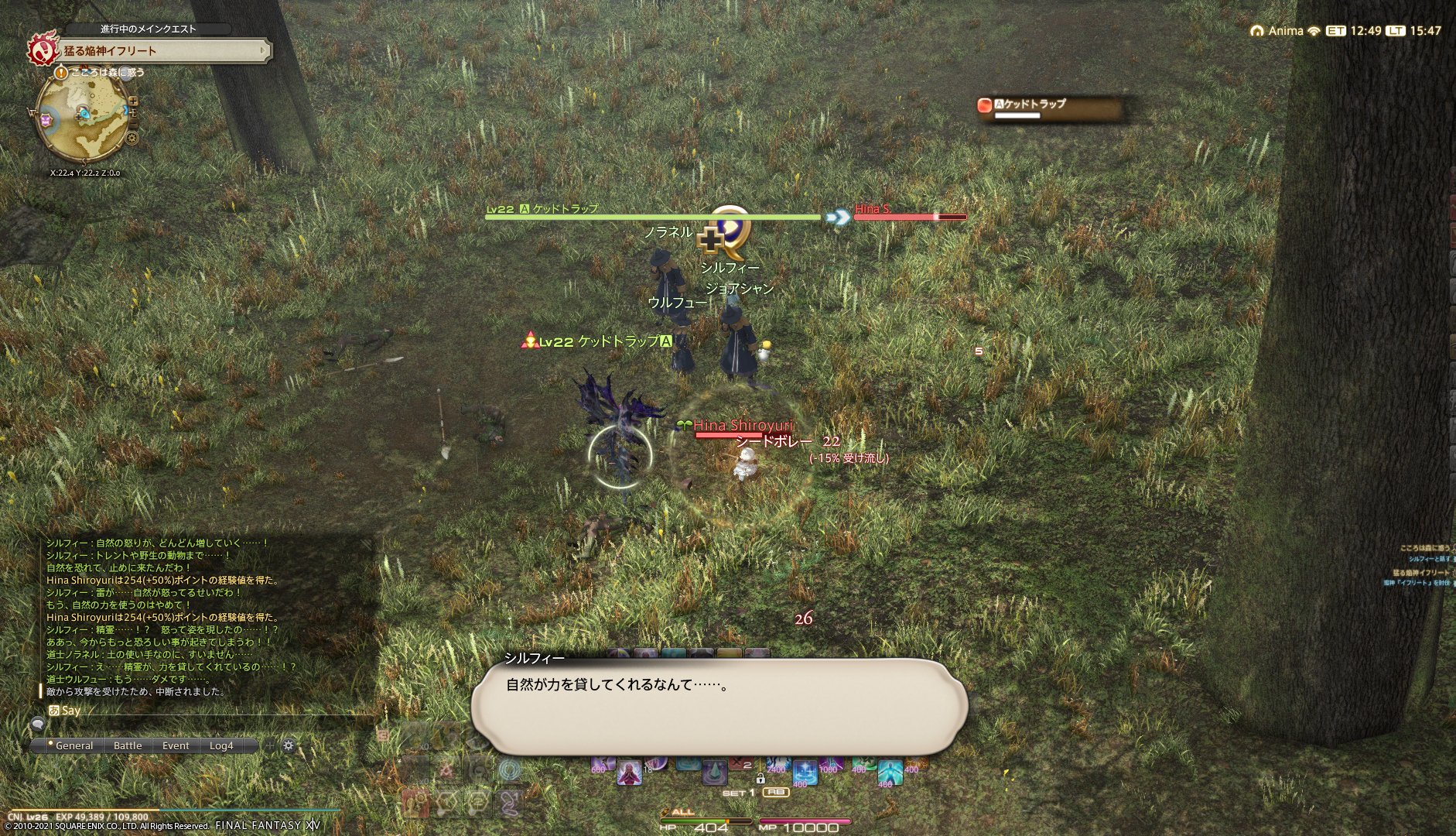 1.幻術士ジョブクエスト こころは森に惑うを受注し、南部森林でクエストの戦いを行う。