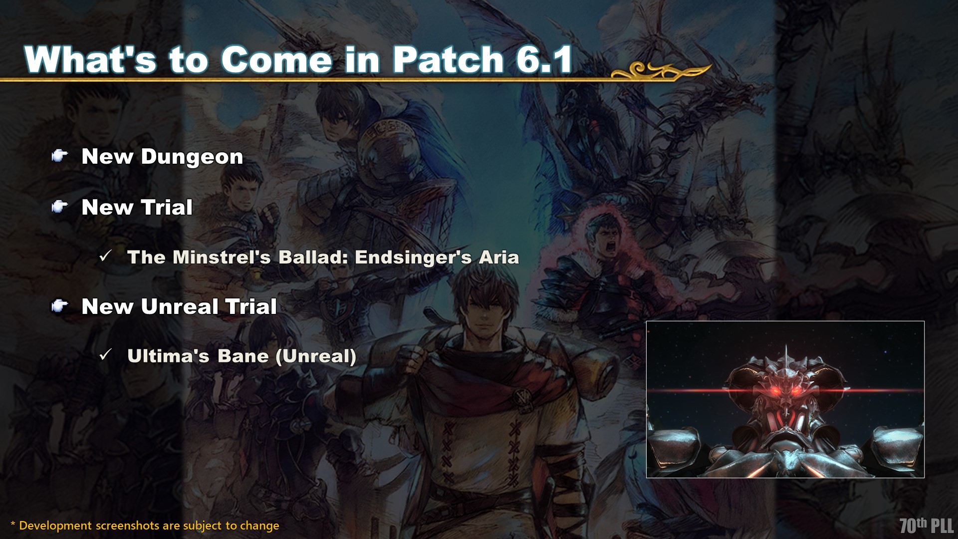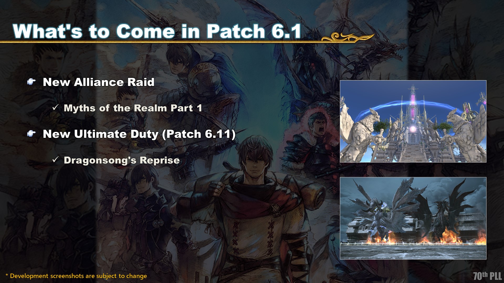 Dragonsong’s Reprise (Ultimate) is scheduled for Patch 6.11, two weeks after Patch 6.1’s release. We’ve already completed all of the balance adjustments and debugging for the battle, which will have a different flavor compared to previous Ultimate content, so we hope you’ll look forward to it.