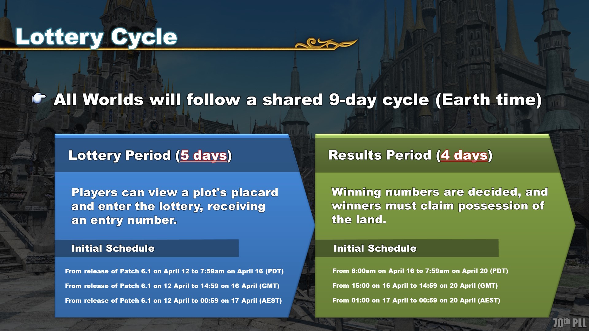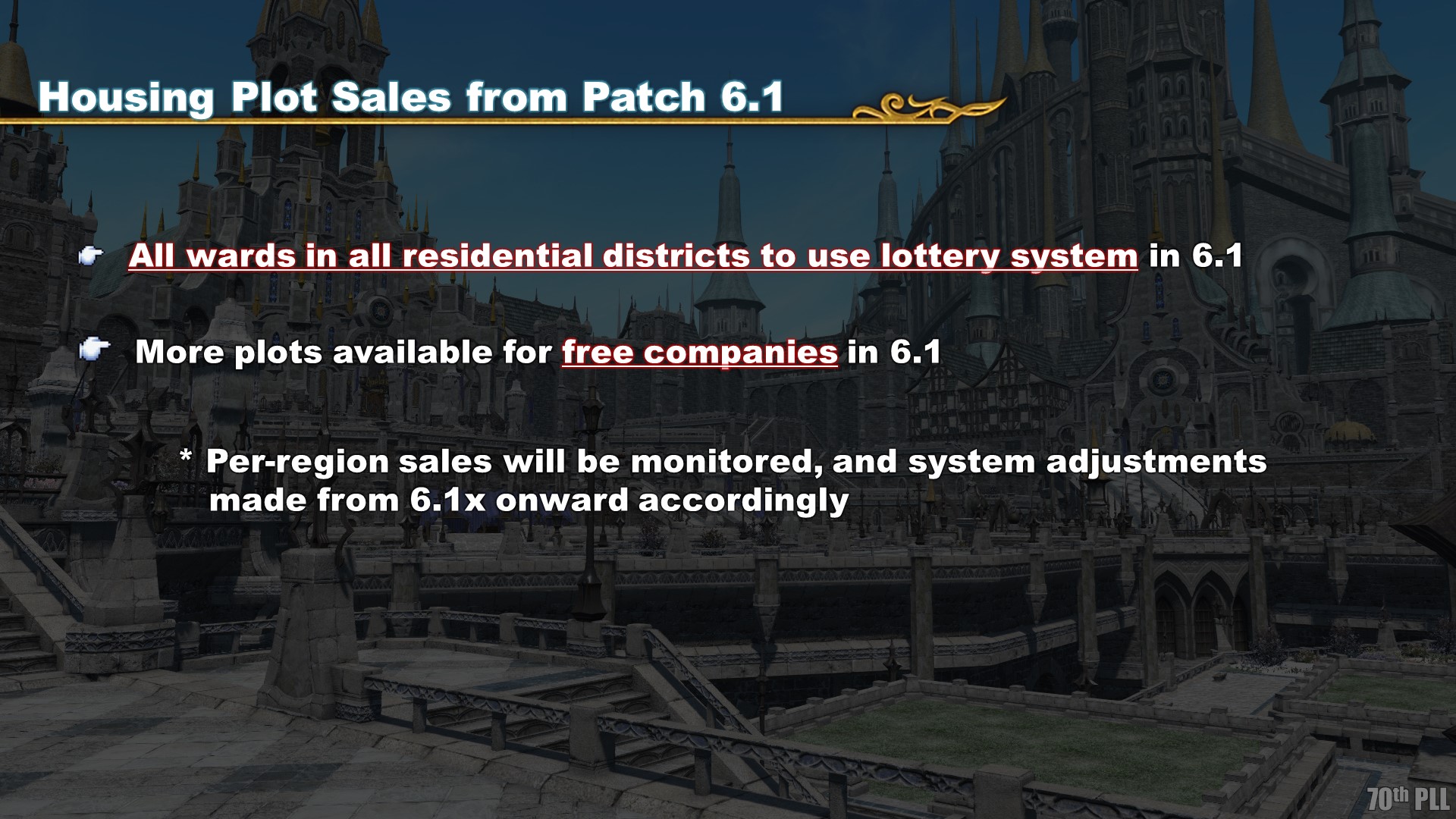 We explained the purchasing system for housing plots in Patch 6.1 onward. For further details, we recommend reading this announcement: North America / Europe and Oceania