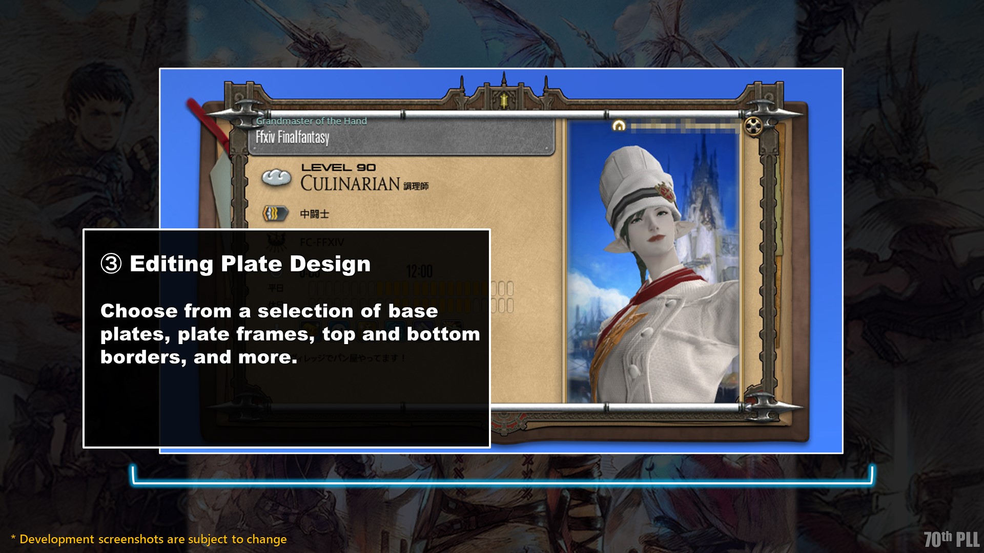 A “beta version” of adventurer plates will be added in Patch 6.1. There are still a few aspects of the feature we’d like to adjust in terms of usability, and our goal is for its full release in Patch 6.15. For now, we’d like to know what you think after trying out this beta version.