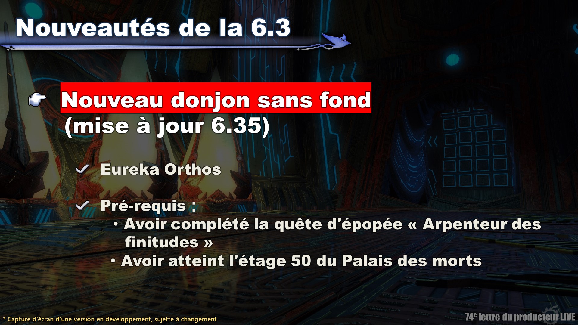 Nous ne dévoilerons pas de détails sur le nouveau défi jusqu'à la sortie de la mise à jour. La décision de révéler le défi ou non lors de l'émission ou dans les communiqués de presse a été difficile à prendre, mais nous préférons garder la surprise pour nos Guerriers de la Lumière. En tout cas, nous sommes impatients de lire vos théories !