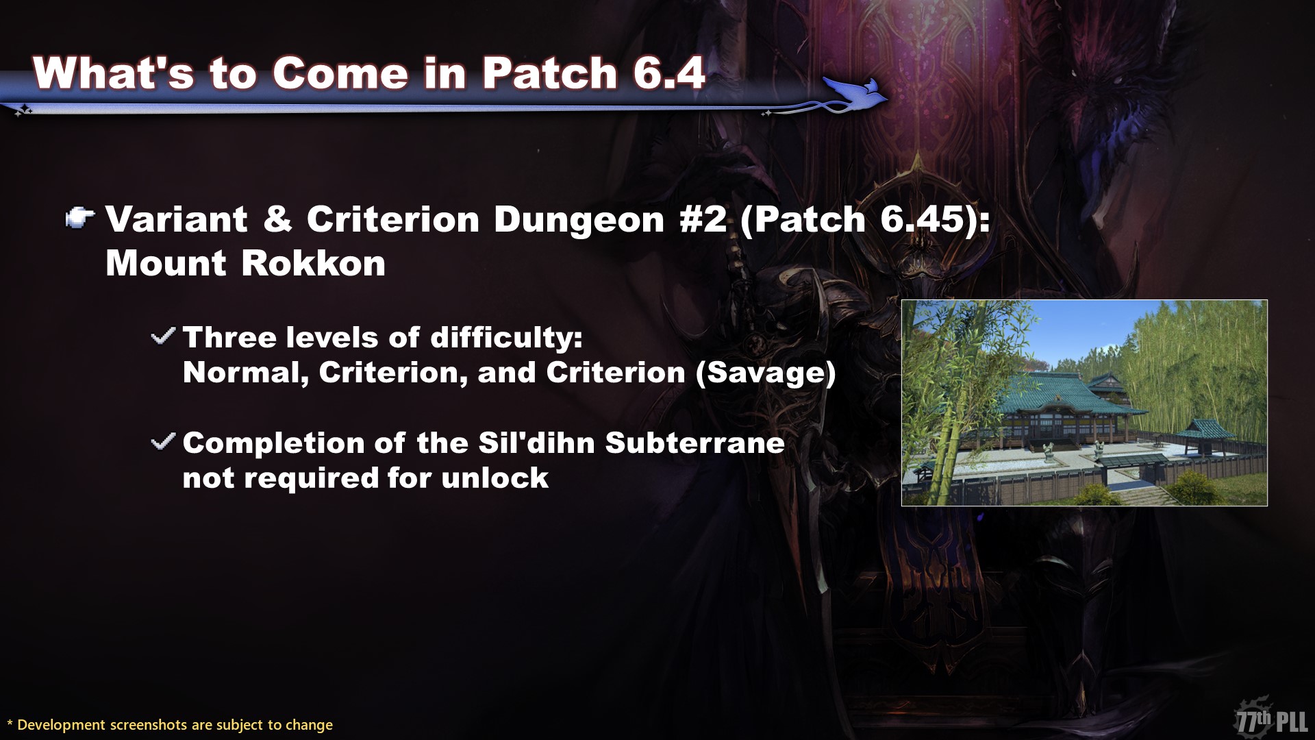 The second Variant & Criterion Dungeon, Mount Rokkon, will be coming in Patch 6.45. Do note that Mount Rokkon will be accessible even if you haven’t entered the Sil’dihn Subterrane.