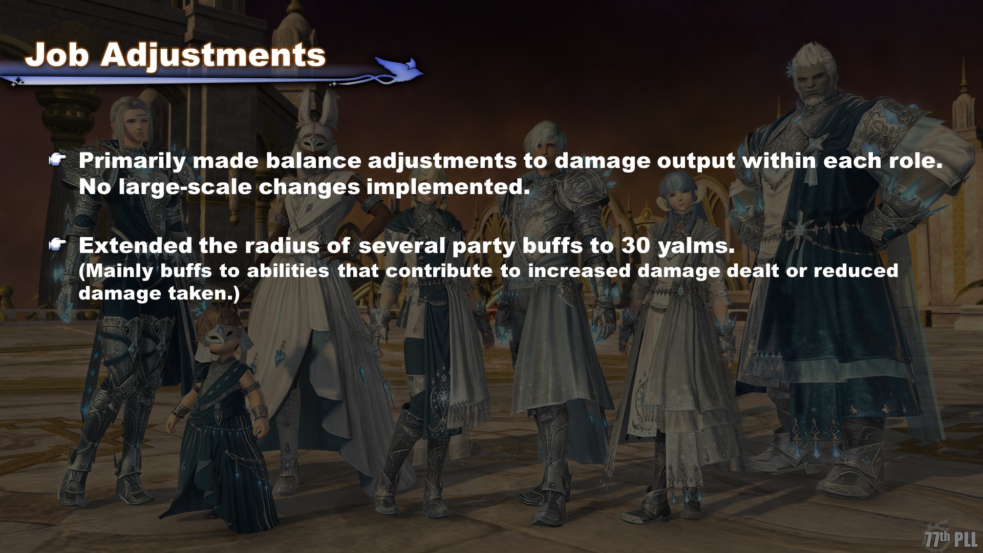 This time around, there won’t be major overhauls to damage rotations; instead, the primary focus will be reinforcing certain jobs to balance damage output within each role. For example, tank jobs other than dark knight will be adjusted for balance; other roles will be adjusted in a similar manner.