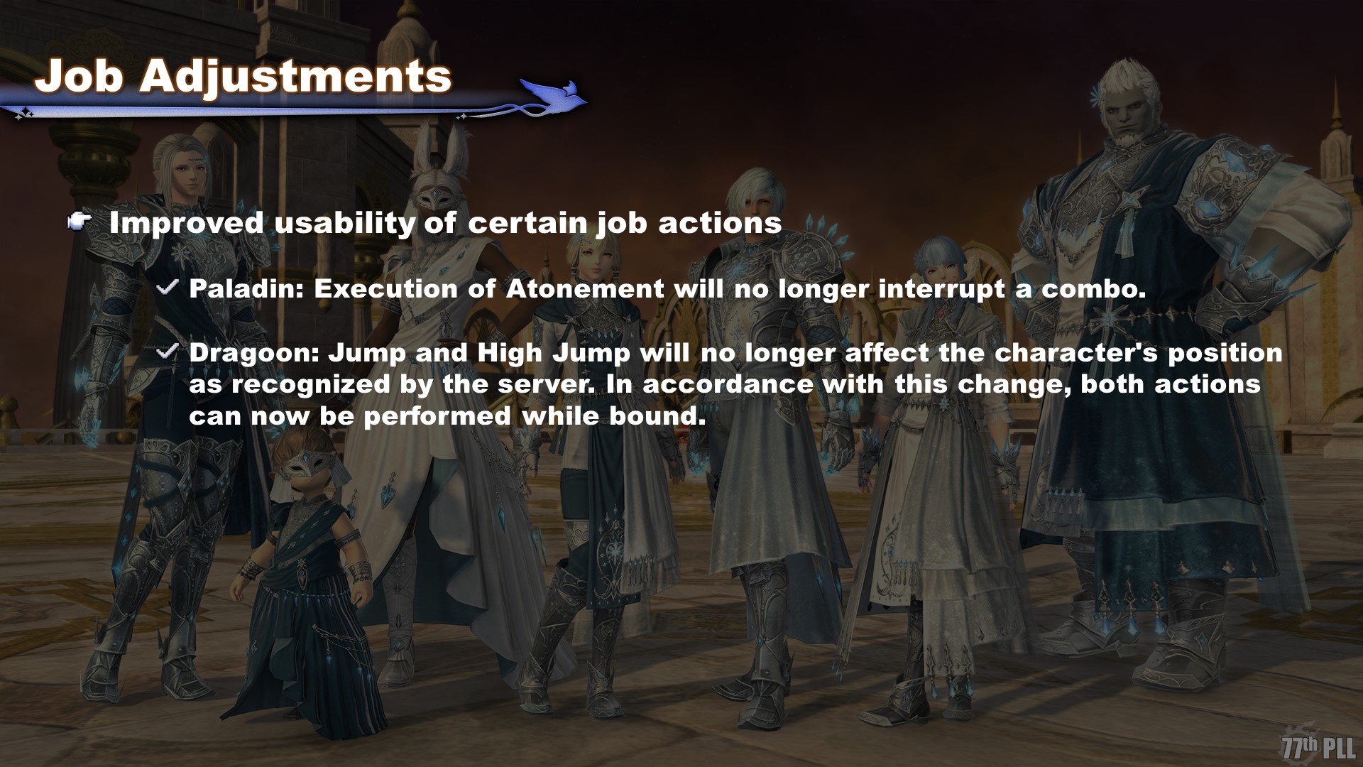 We also went over specific adjustments to paladin and dragoon. For paladin, Atonement will be changed to no longer interrupt combos. As for dragoon, Jump and High Jump will no longer shift the character’s position, removing the risk of leaping forward when using them. The two abilities will also be performable while bound, bringing them in line with other jobs’ damage abilities which can be used in the same situations.