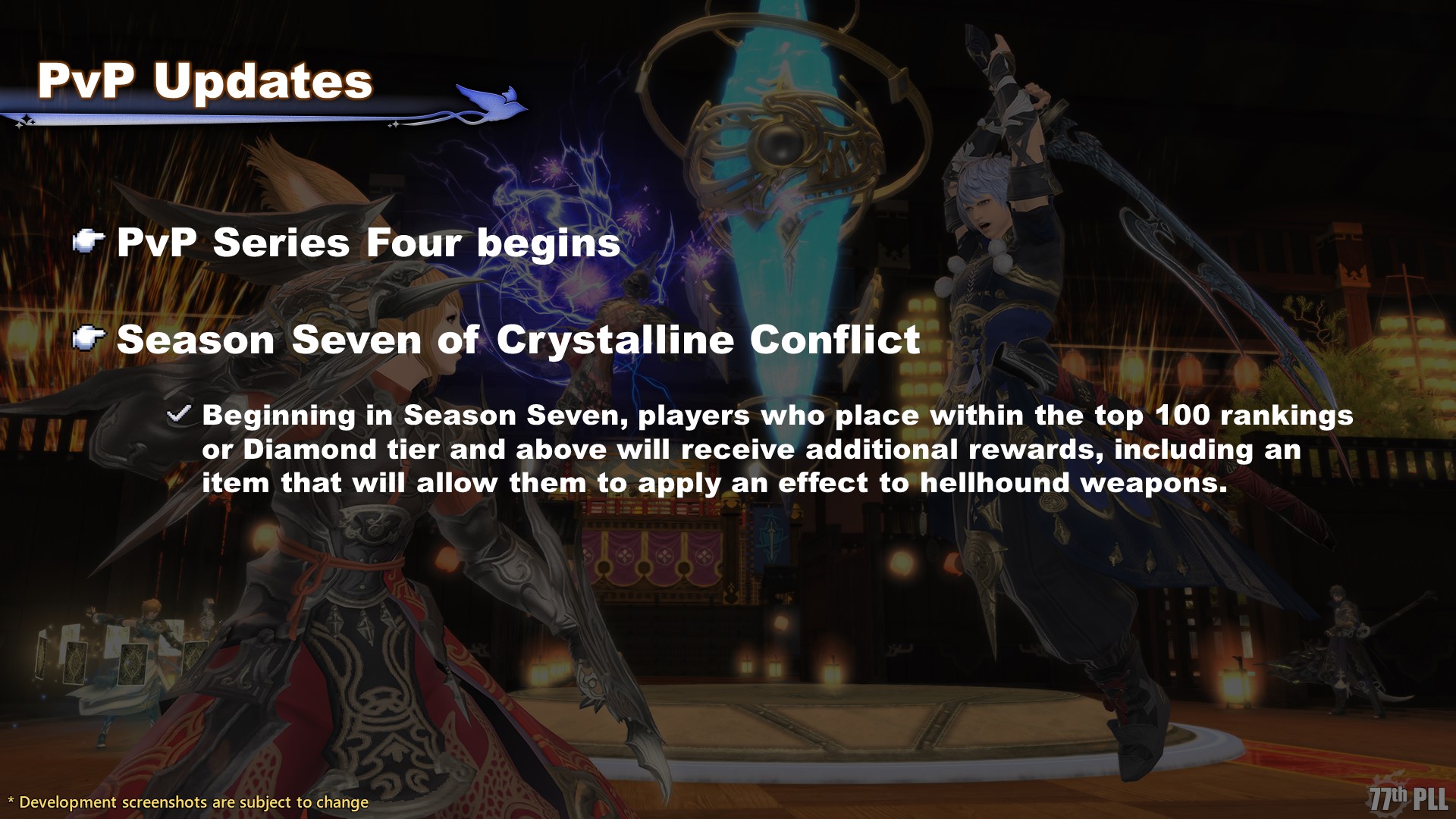 A new reward token will be added to Crystalline Conflict for those who place within the top 100 rankings or Diamond tier and above; the higher your ranking, the more tokens you’ll receive. After accumulating a certain quantity of the new token, they can be exchanged to apply a visual effect to Hellhound weapons. The tokens will persist across PvP seasons, so you’ll be able to collect them over time, as well as work towards obtaining enough for multiple weapons.