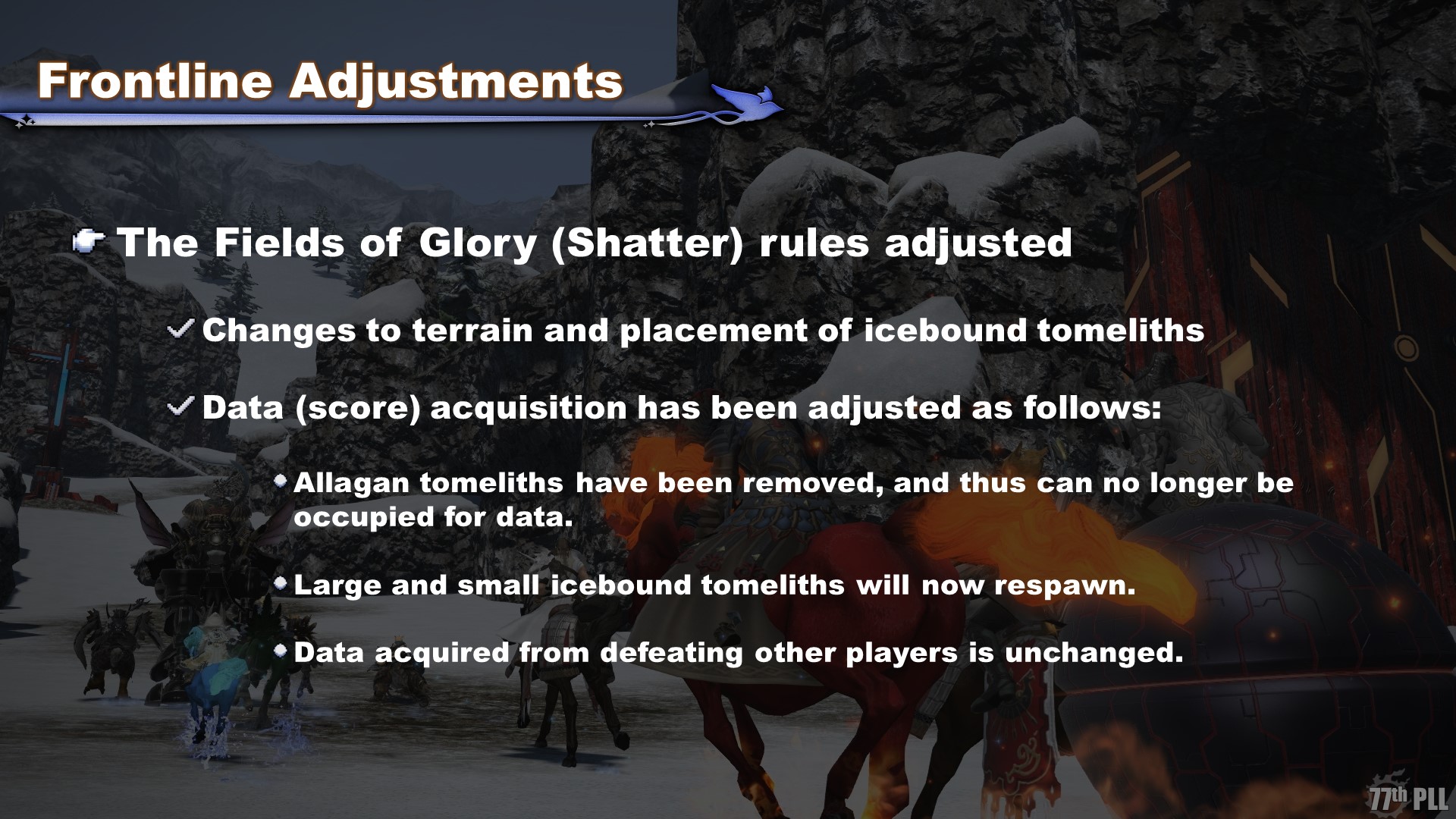 Scoring methods will also be adjusted, including the addition of icebound tomeliths. This change is intended to resolve the standstill situations which often occurred when all active objectives were destroyed.