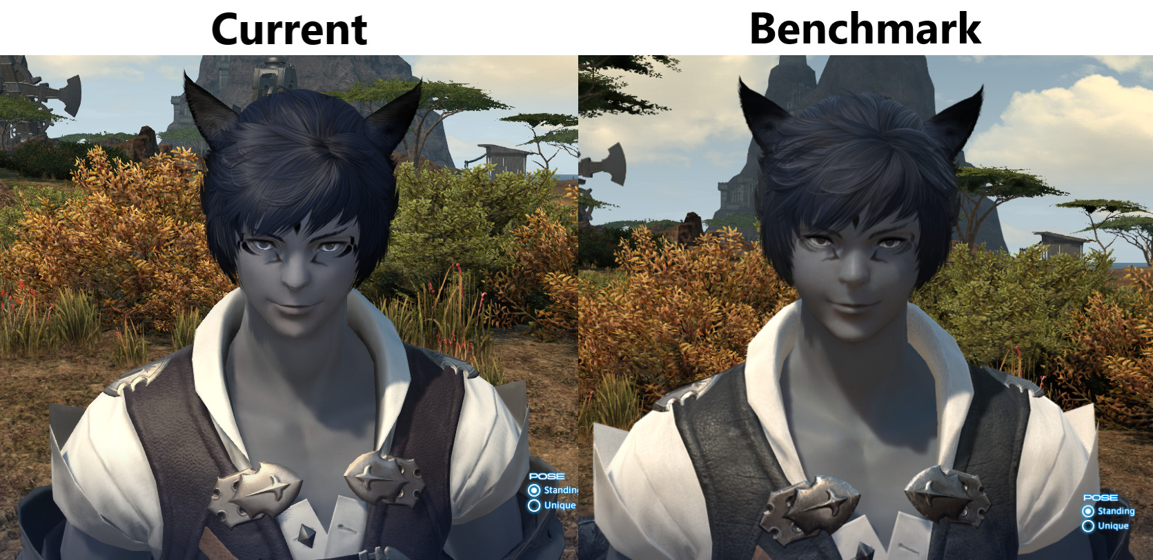 I haven't used the forums before, so I have no clue if I'm doing this right, but there's something off I noticed with the before and after for my WoL during the benchmark. Every other angle looks practically the same except for the front. The race is Miqo'te male, face type is 4, eye shape 3. Hoping this is something that can be changed easily before the release of Dawntrail, or at least something that can be confirmed with someone else that I'm not crazy.