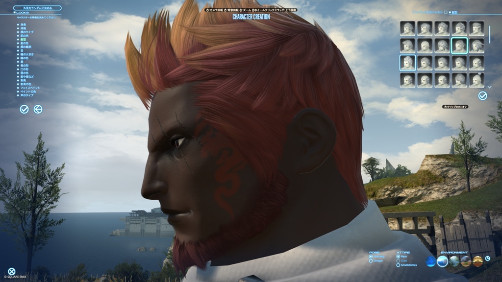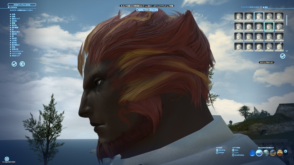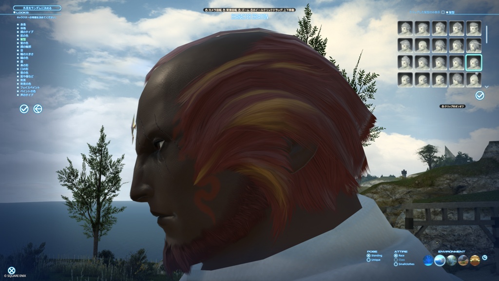 新生の頃からなので今更な話ではありますが、ルガディン男性で初期から選べる髪型が頭から浮いています。