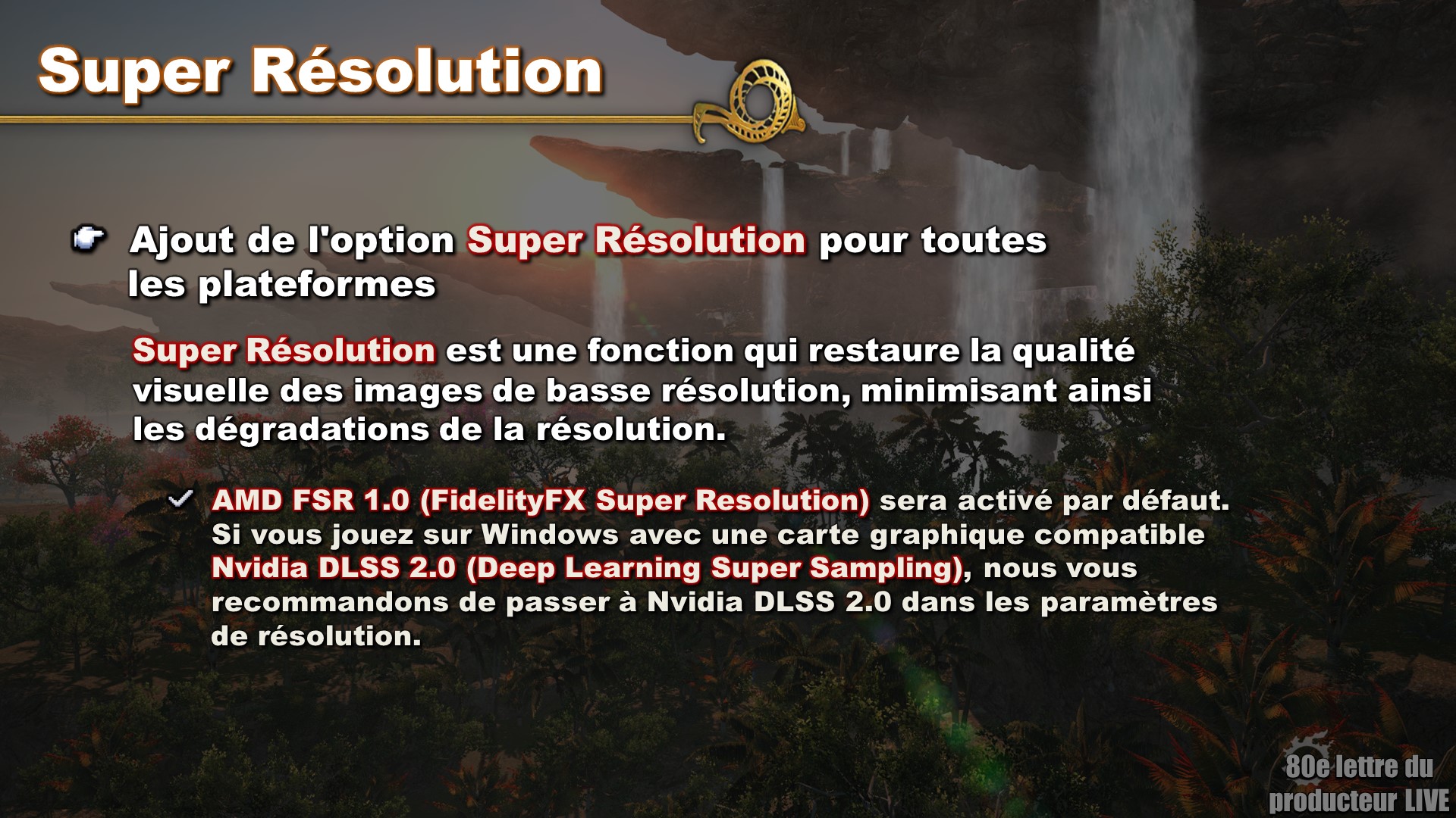 Si vous rencontrez des problèmes de performances, vous pouvez envisager d'activer la résolution dynamique qui ajustera automatiquement la résolution de votre écran lorsque votre jeu passe en d'une fréquence d'images spécifiée. La résolution dynamique a été ajoutée à la mise à jour 6.2 et pourra être utilisée avec l'option Super Résolution afin de garantir le bon fonctionnement de votre jeu tout en ayant une super image !