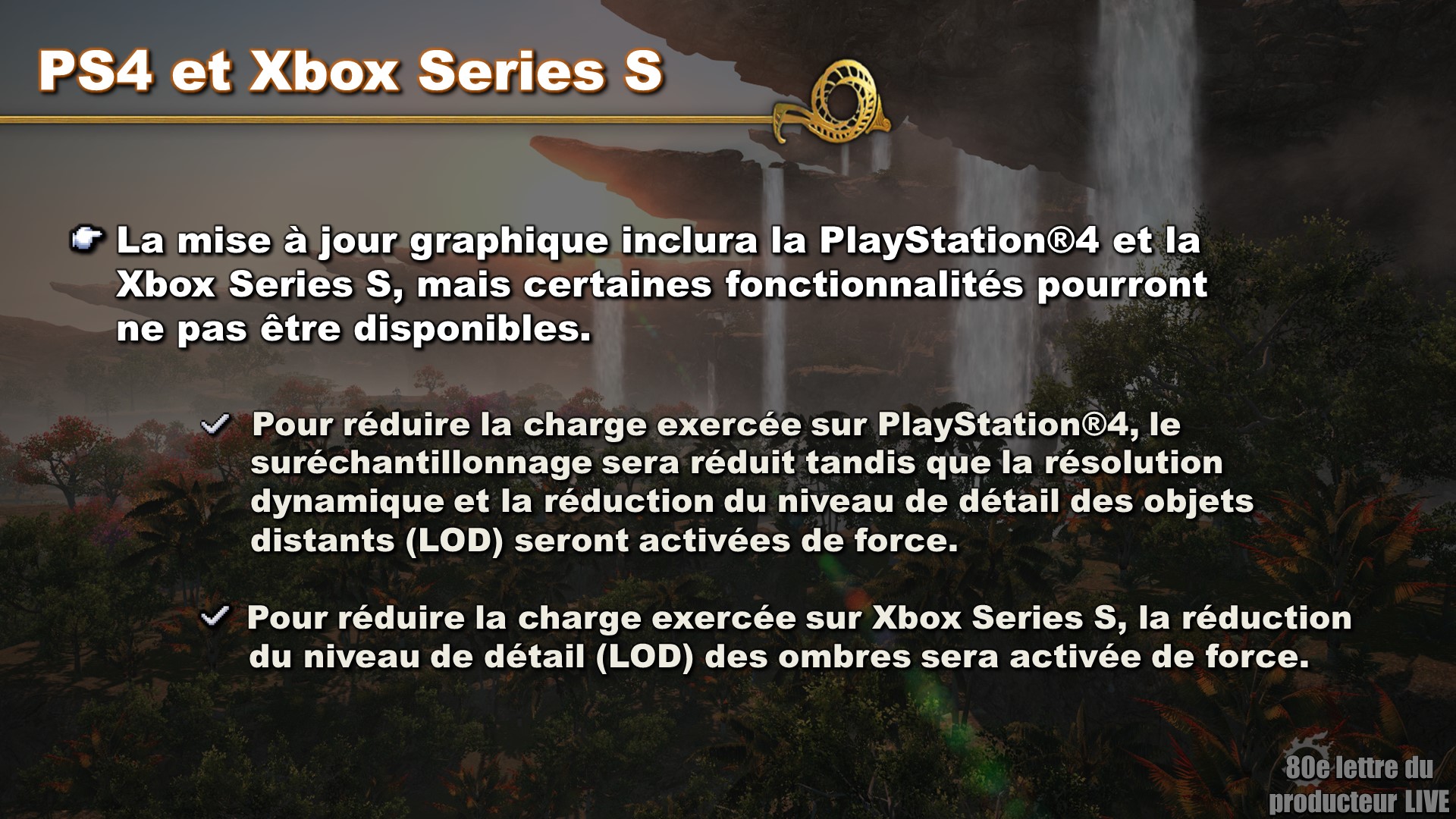 Certains paramètres seront toujours activés pour améliorer la qualité graphique tout en maintenant les performances dans les deux versions. Les avantages de la mise à jour graphique seront bien perceptibles. Dans le même ordre d'idées, soyez assuré que la version PS4 restera prise en charge pendant toute la durée de la mise à jour 7.x.