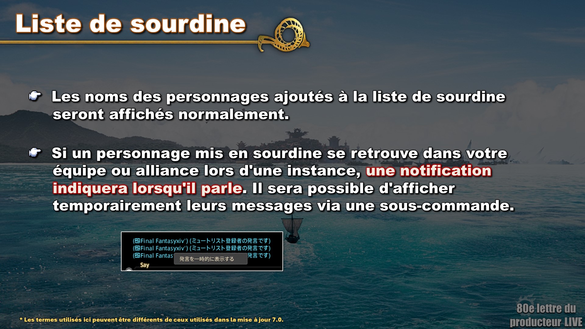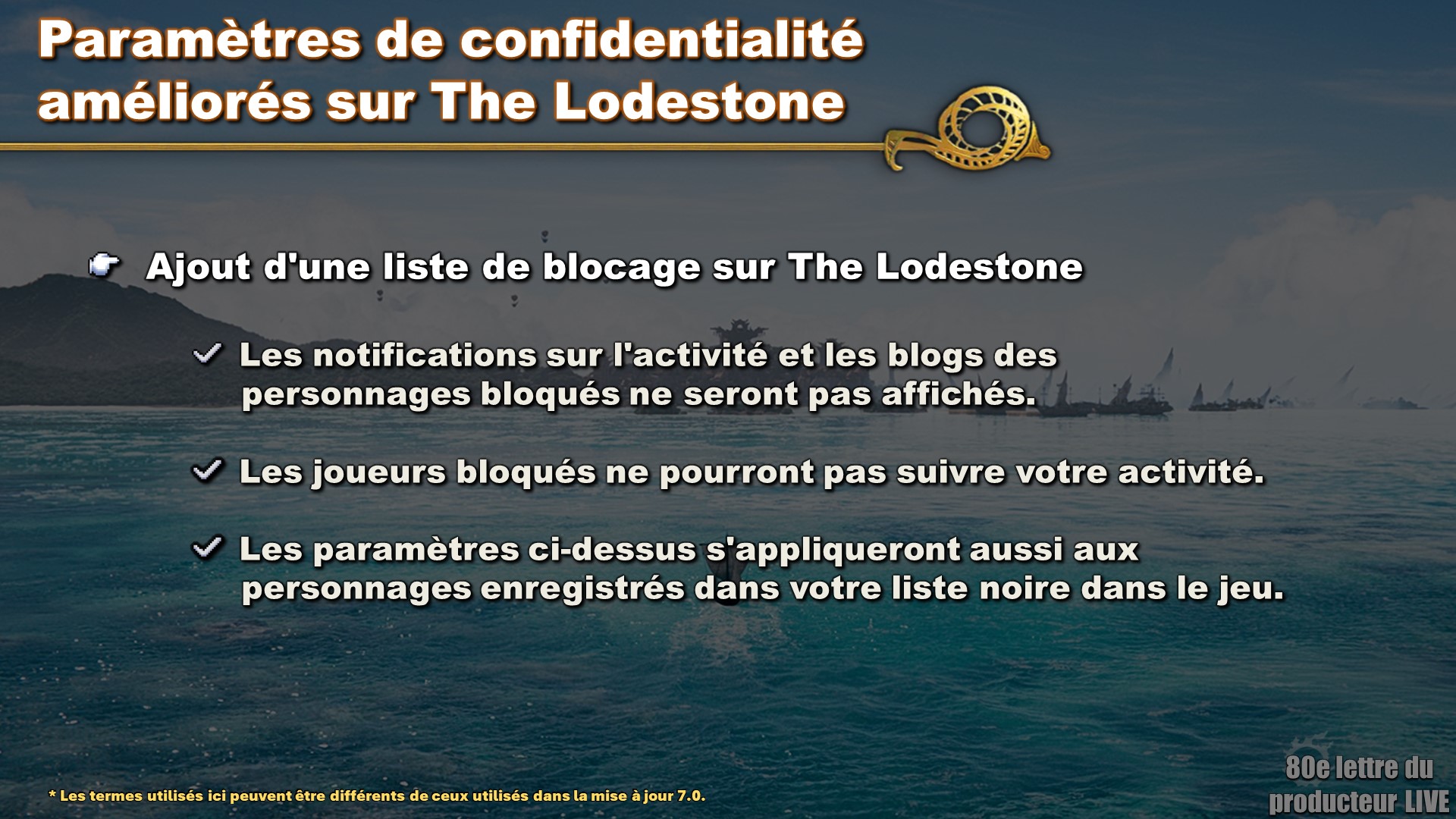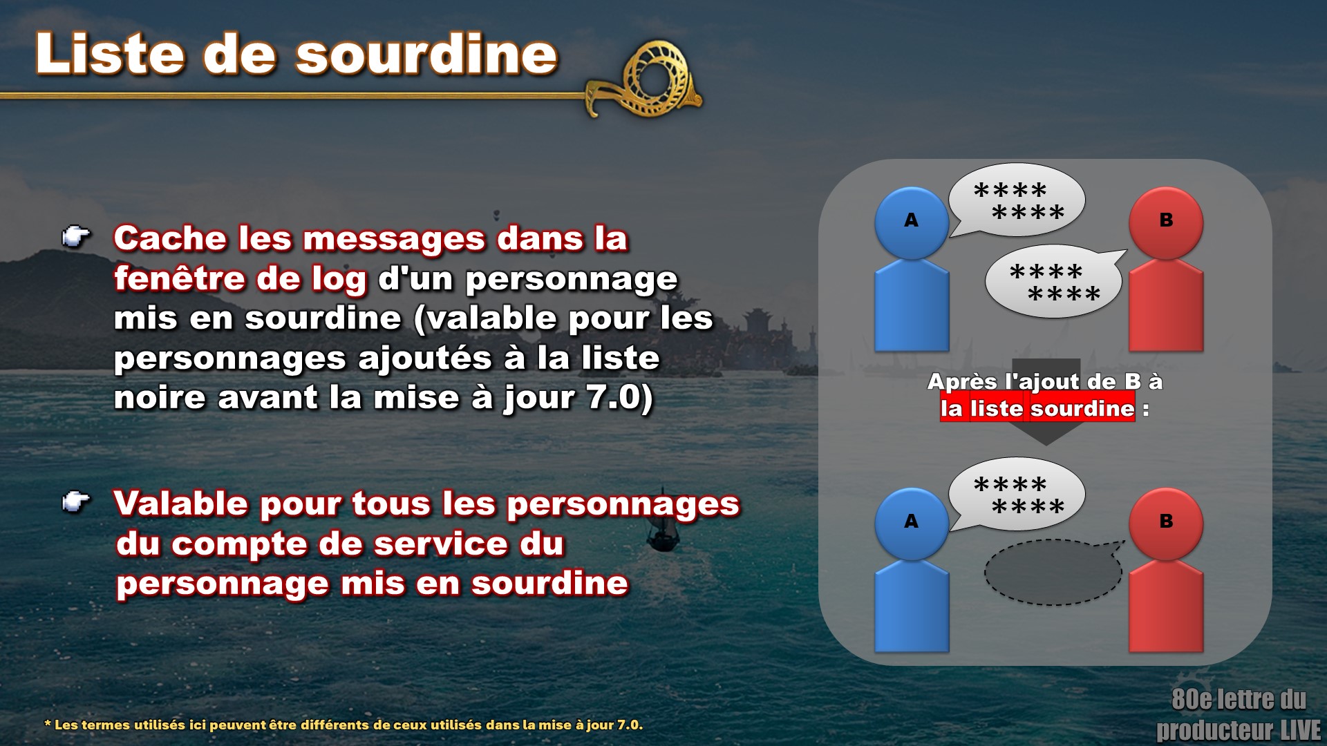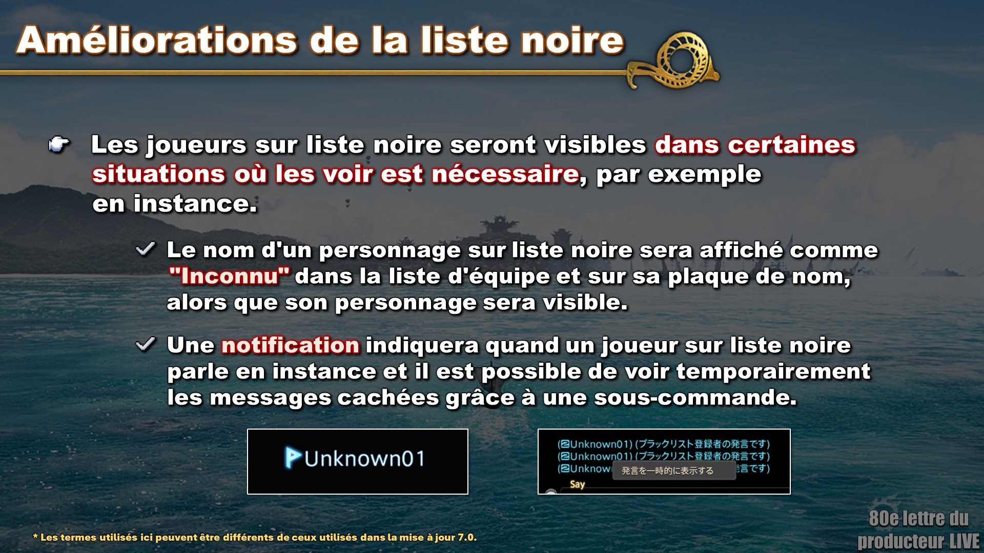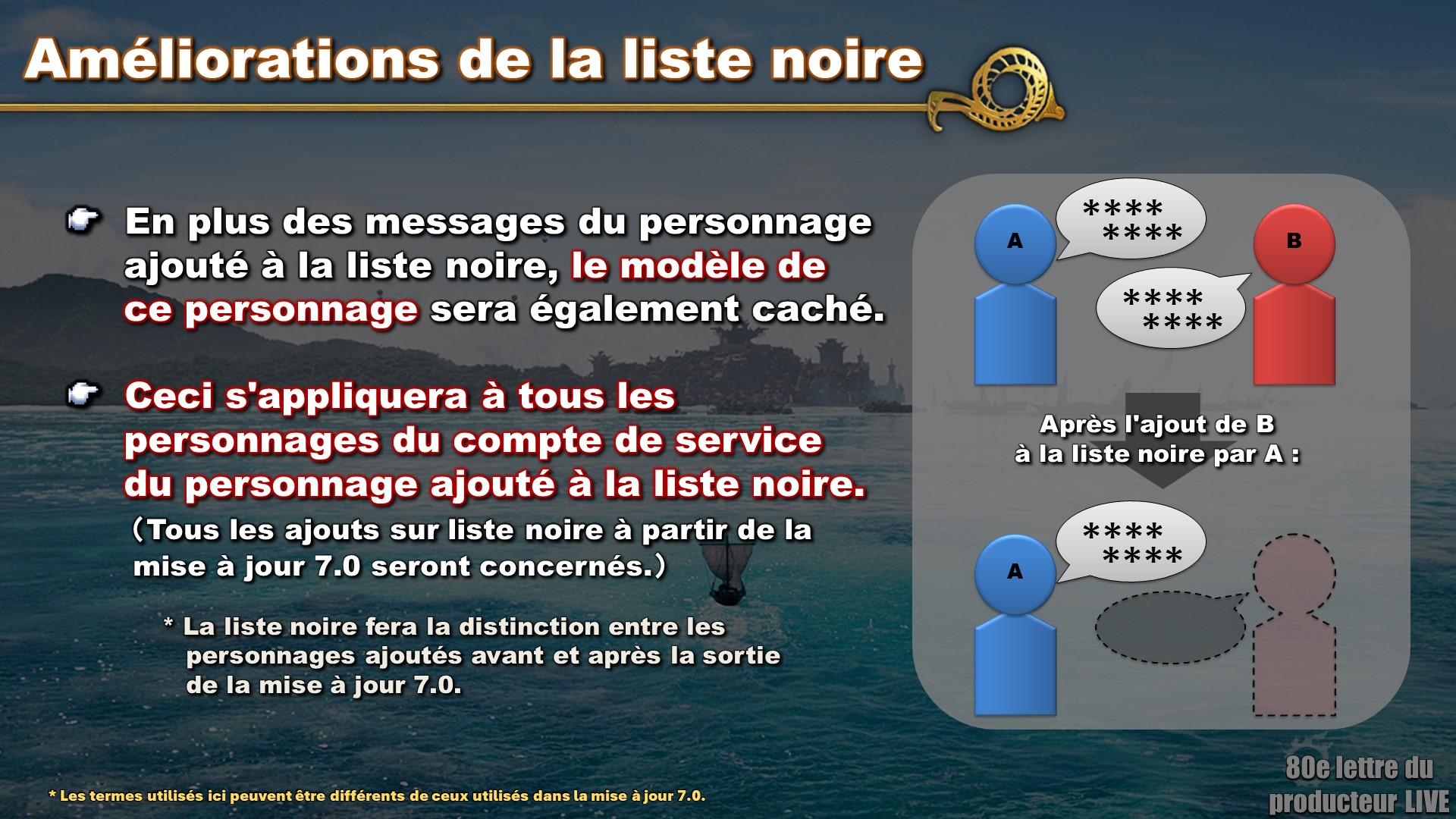 À partir de la mise à jour 7.0, la mise à jour graphique sera appliquée aux nouvelles coupes de cheveux, aux nouveaux équipements, etc. Les équipements existants, les PNJ, les décors, et plus encore seront progressivement mis à jour dans la mise à jour 7.0 et les mises à jour suivantes.