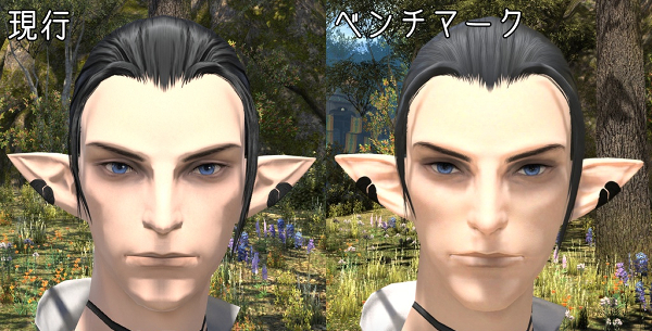 黄金ベンチマークにて、エレゼン男性2顔の頬の形状が全く異なる