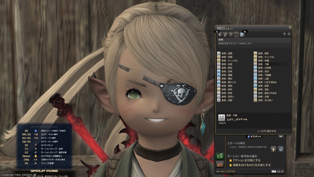 アイパッチ装備の紐が表情によって欠ける(ララフェル)
