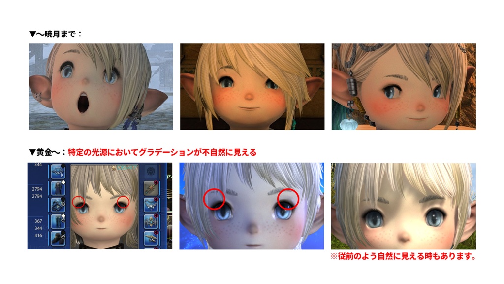 グラフィックスアップデートが適用されてから瞼周辺のグラデーションが不自然に見えるようになっています。