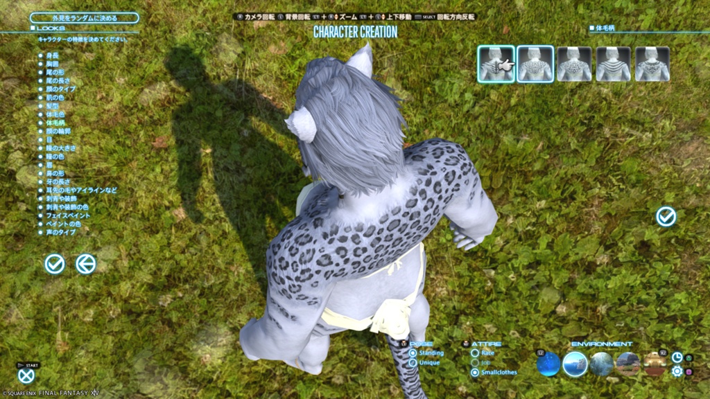 2.体毛色タブの「柄を入れる」の有無にかかわらず、地面や体に落ちる影が細くなる