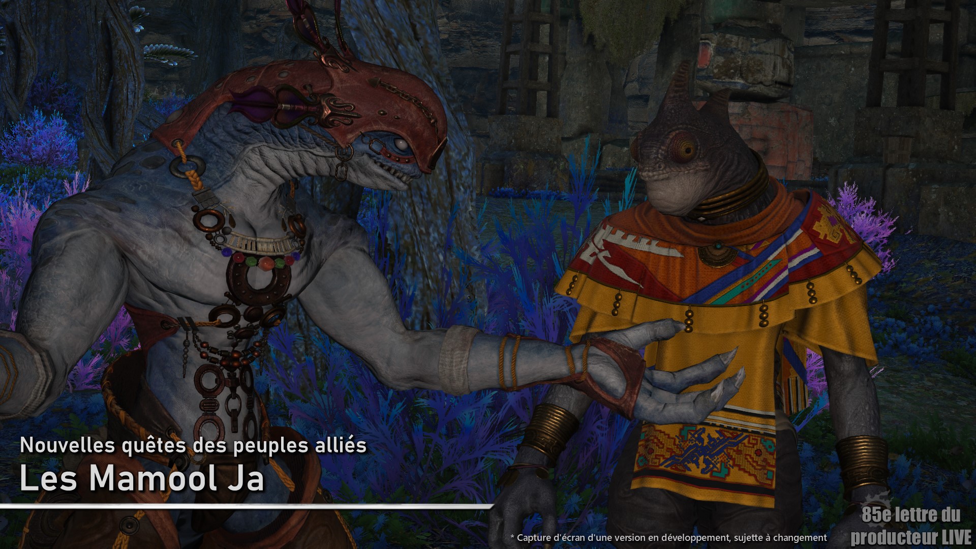 Nous avons ensuite pu voir quelques captures d'écran des nouvelles quêtes des peuples alliés pour les Mamool Ja qui seront destinées aux récolteurs !