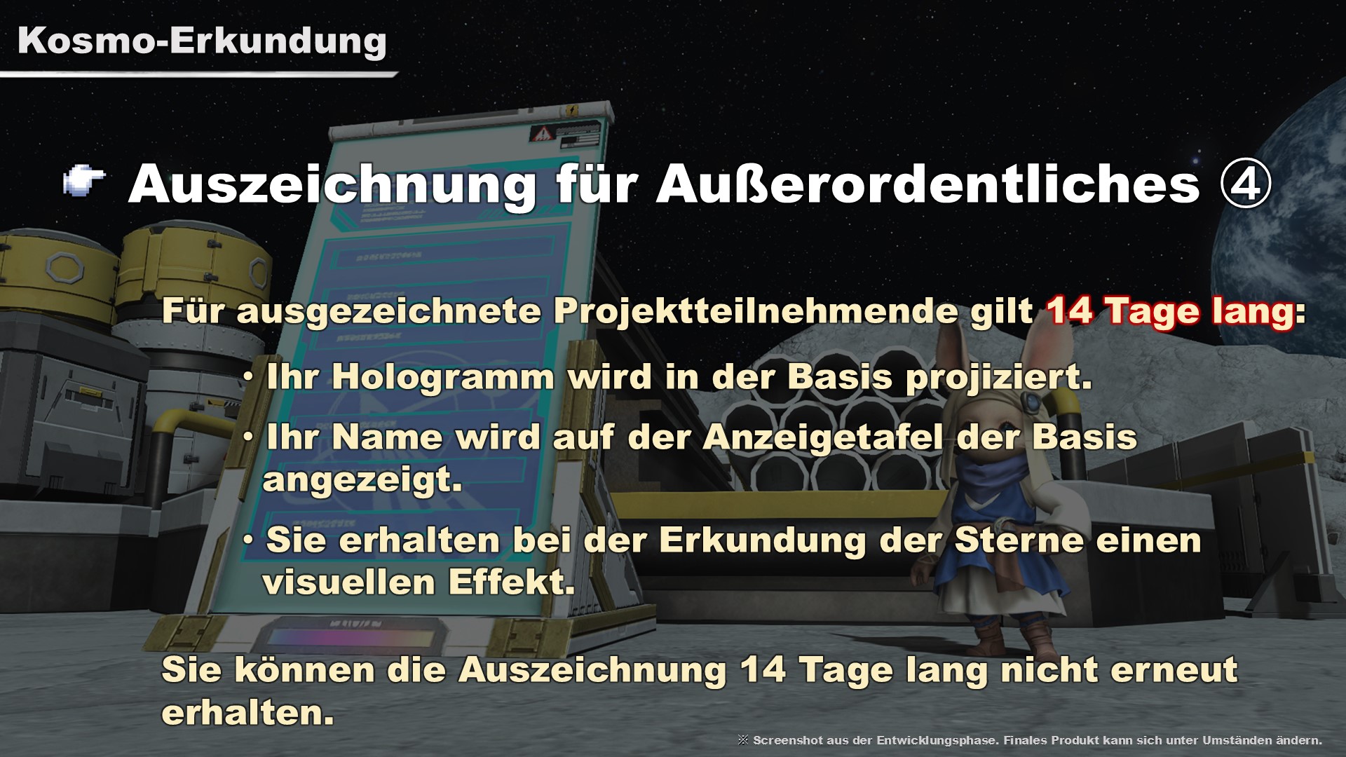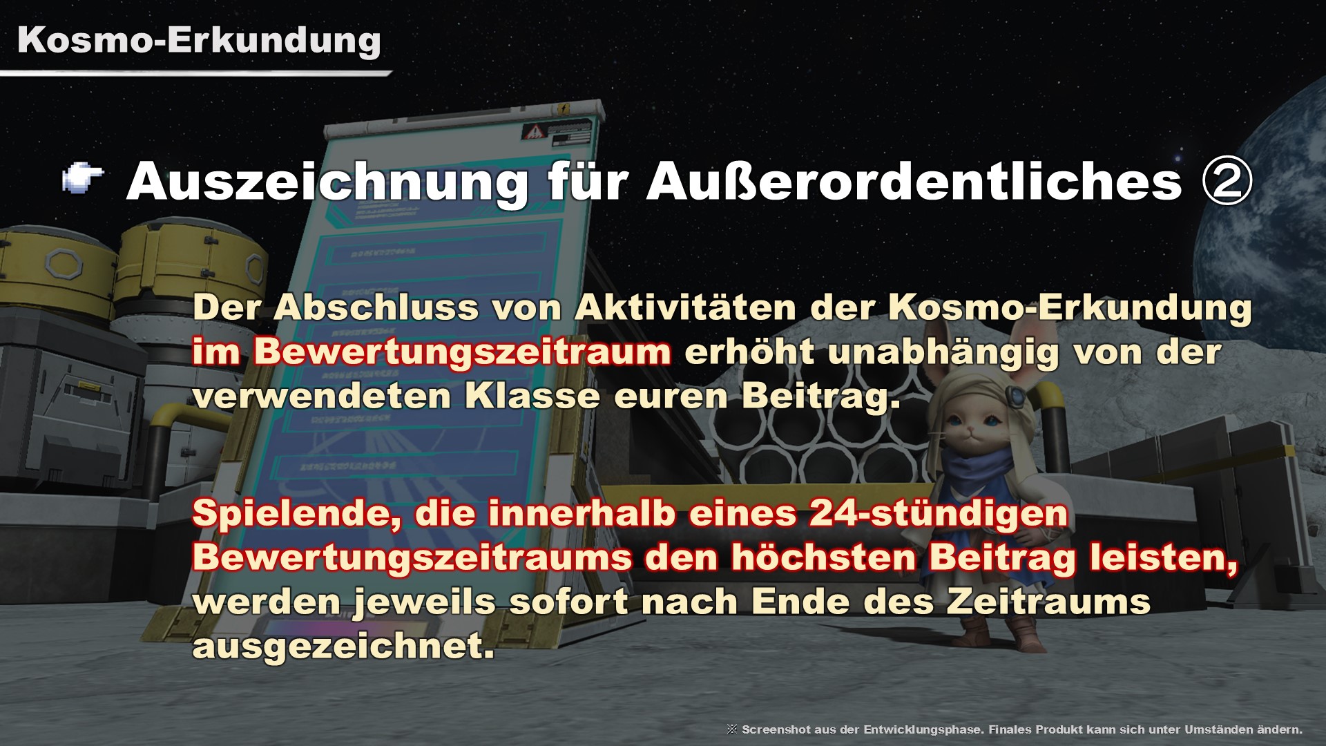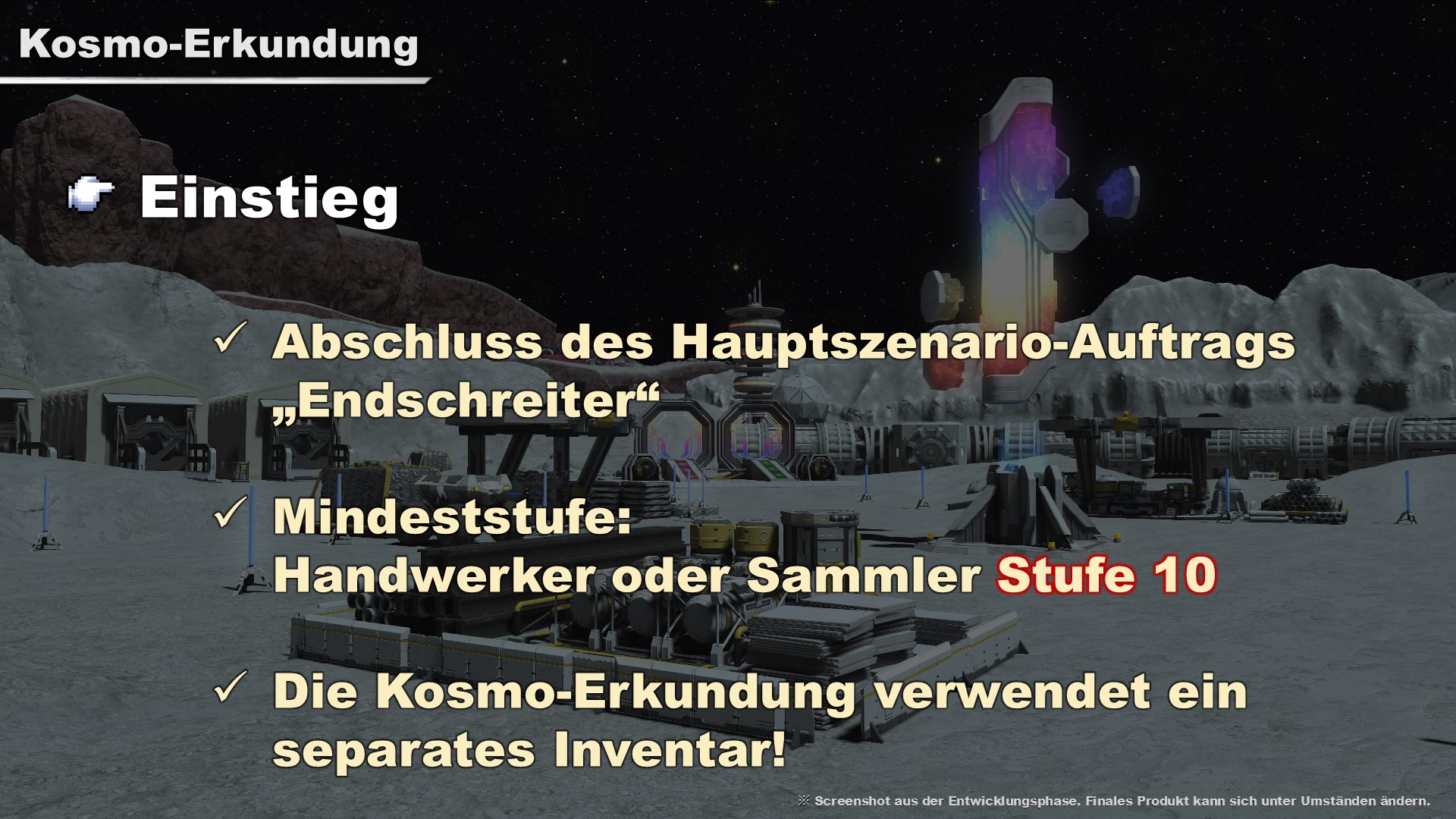 Dieser großangelegte Inhalt richtet sich an Handwerker und Sammler. Später im Stream haben wir die Kosmo-Erkundung auch im Spiel gezeigt.