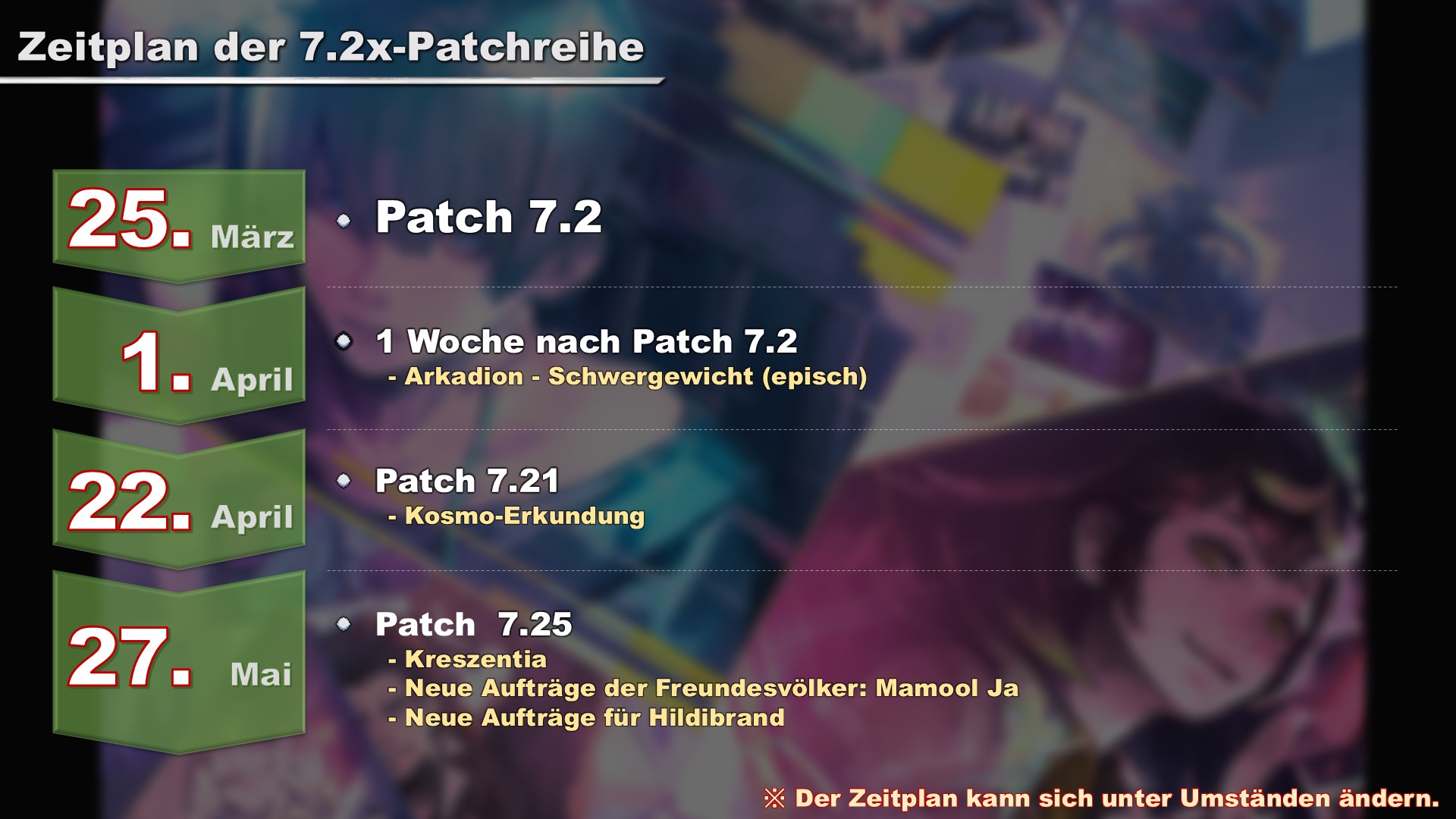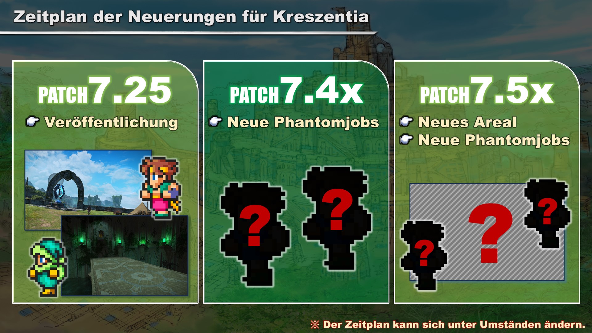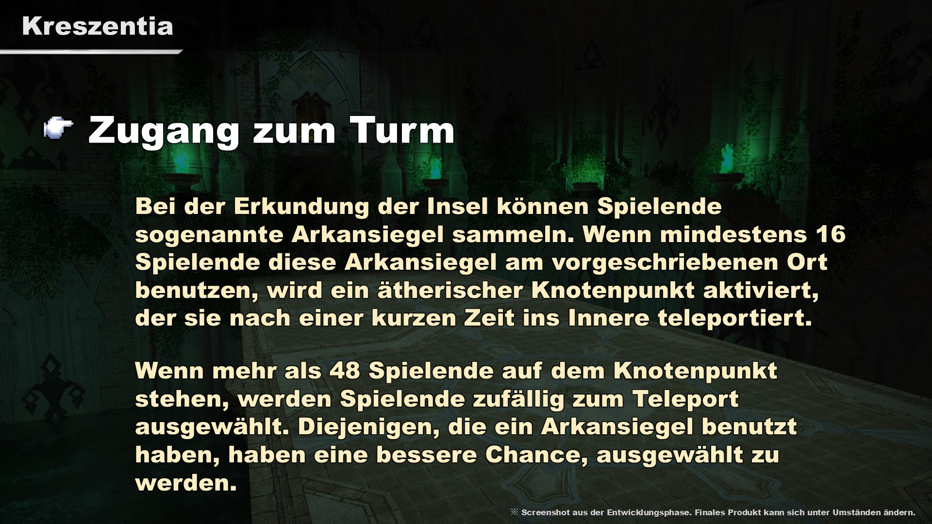 Da es einige Zeit in Anspruch nimmt, die Kosmo-Erkundung und Kreszentia durchzuspielen, werden die beiden Inhalte im Abstand von einem Monat aktualisiert.