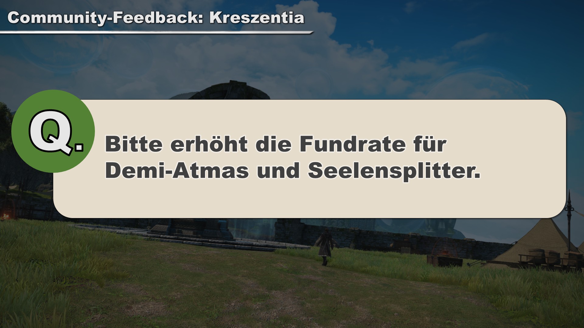 Demi-Atmas haben eine Fundrate von etwa 20 % bei kritischen Begegnungen und 5 % bei FATEs (sowohl in Kreszentia als auch in Dawntrail-Arealen). Diese Wahrscheinlichkeiten bedeuten, dass es mitunter Zeiten geben kann, in denen ihr relativ oft Demi-Atmas erhaltet, und wieder andere, in denen sie einfach nicht aufzutauchen scheinen.