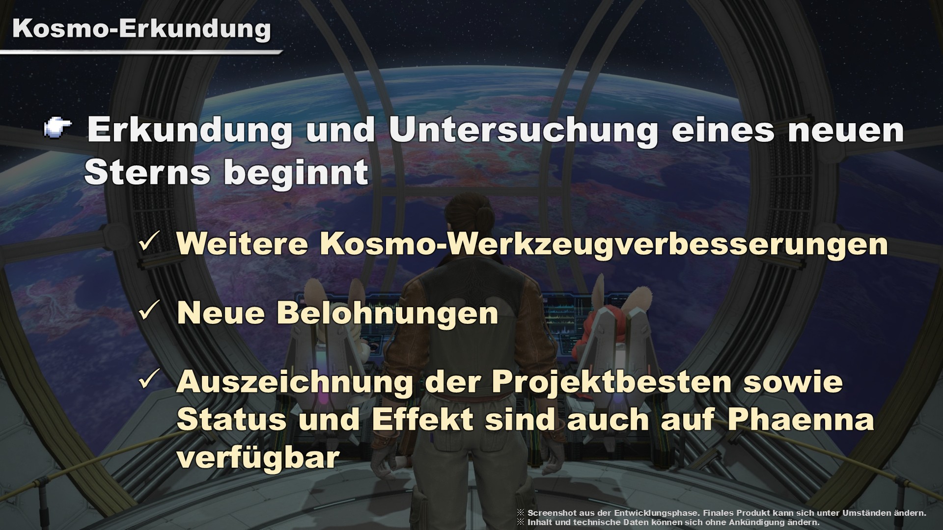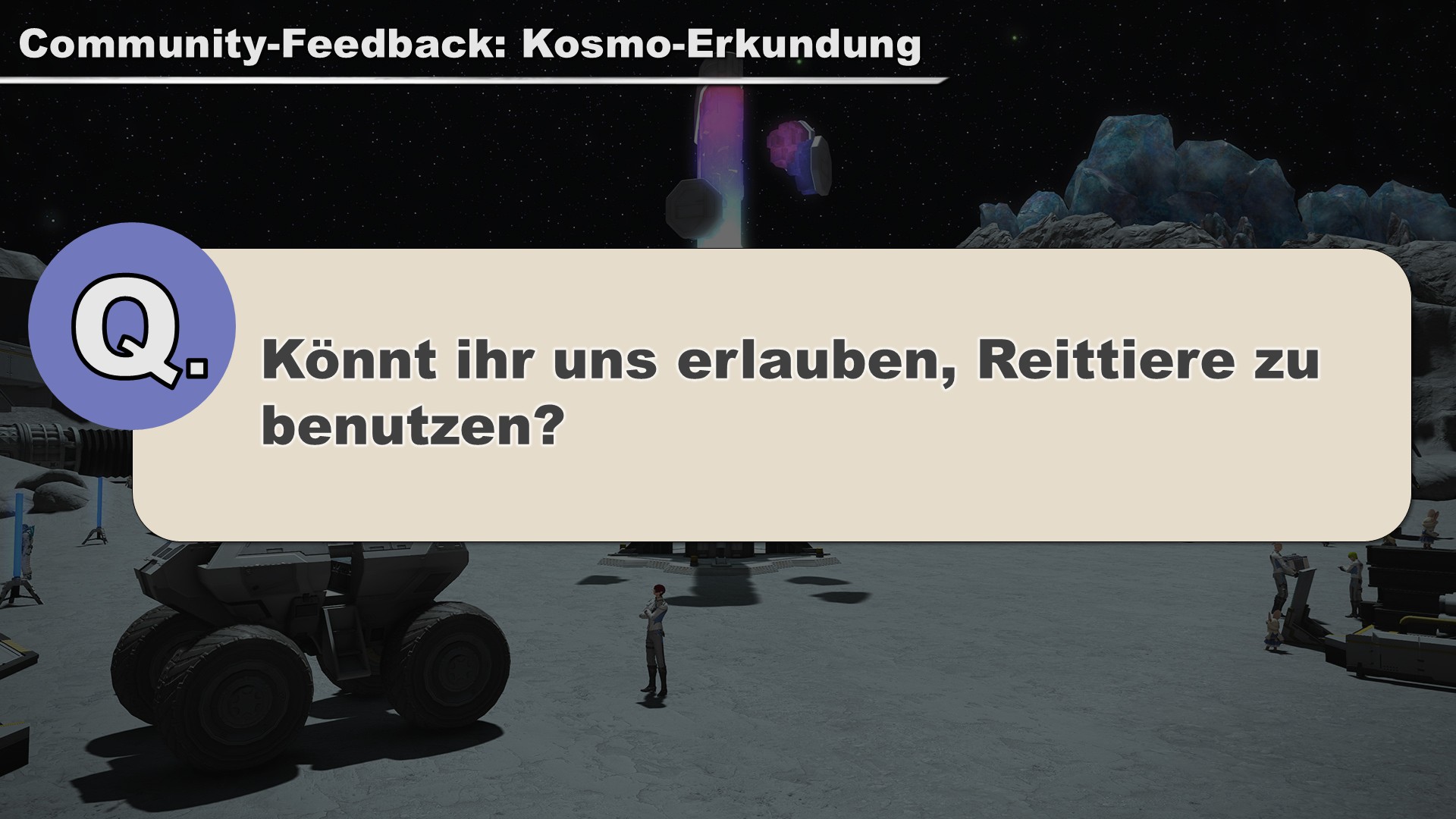 Darüber hinaus haben die Areale der Kosmo-Erkundung eine Menge neuer Funktionen, darunter auch Systeme mit komplexer Implementierung. Jetzt, da wir ein klares Ziel für die Implementierung dieser Funktionen vor Augen haben, werden wir das Endresultat noch einmal überprüfen und Reittiere in zukünftigen Arealen zulassen.