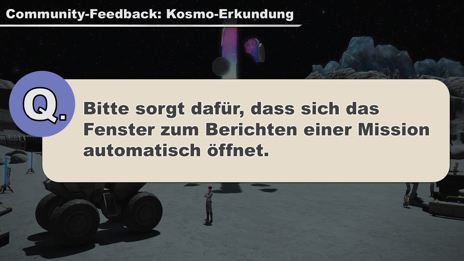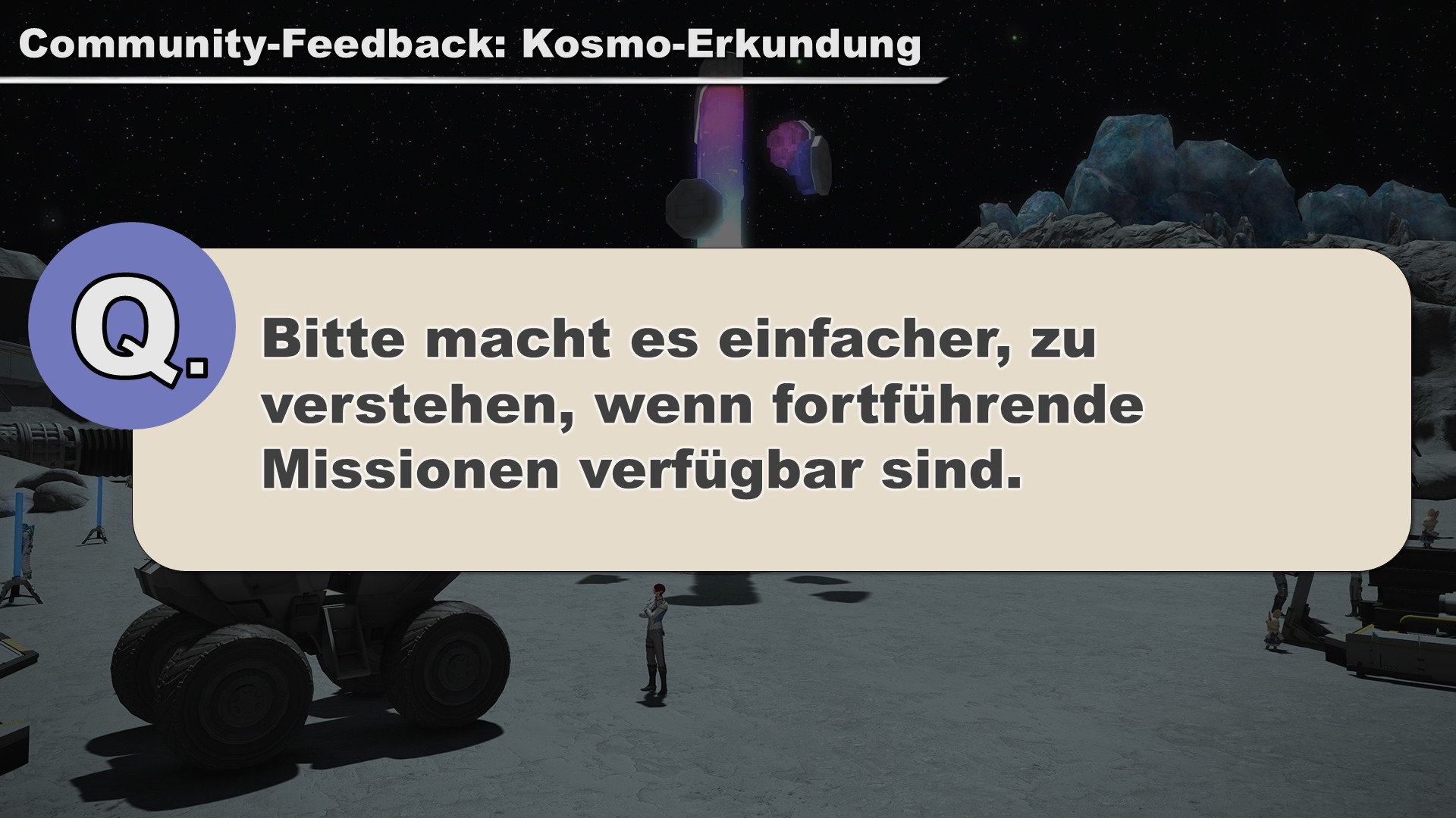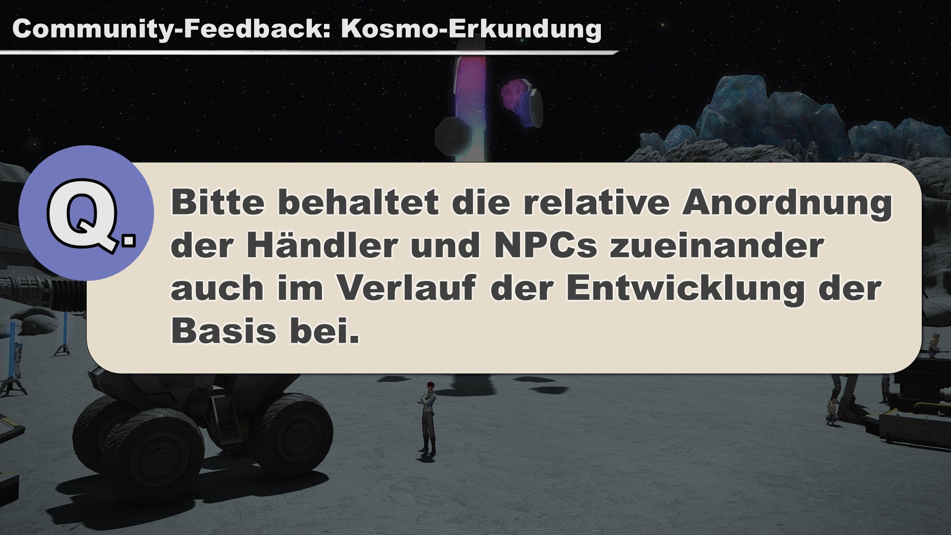 In diesem Abschnitt sind wir auf globale Rückmeldungen zu Kreszentia und der Kosmo-Erkundung eingegangen und haben unsere Pläne dazu, wie wir ihnen beikommen werden, geteilt.