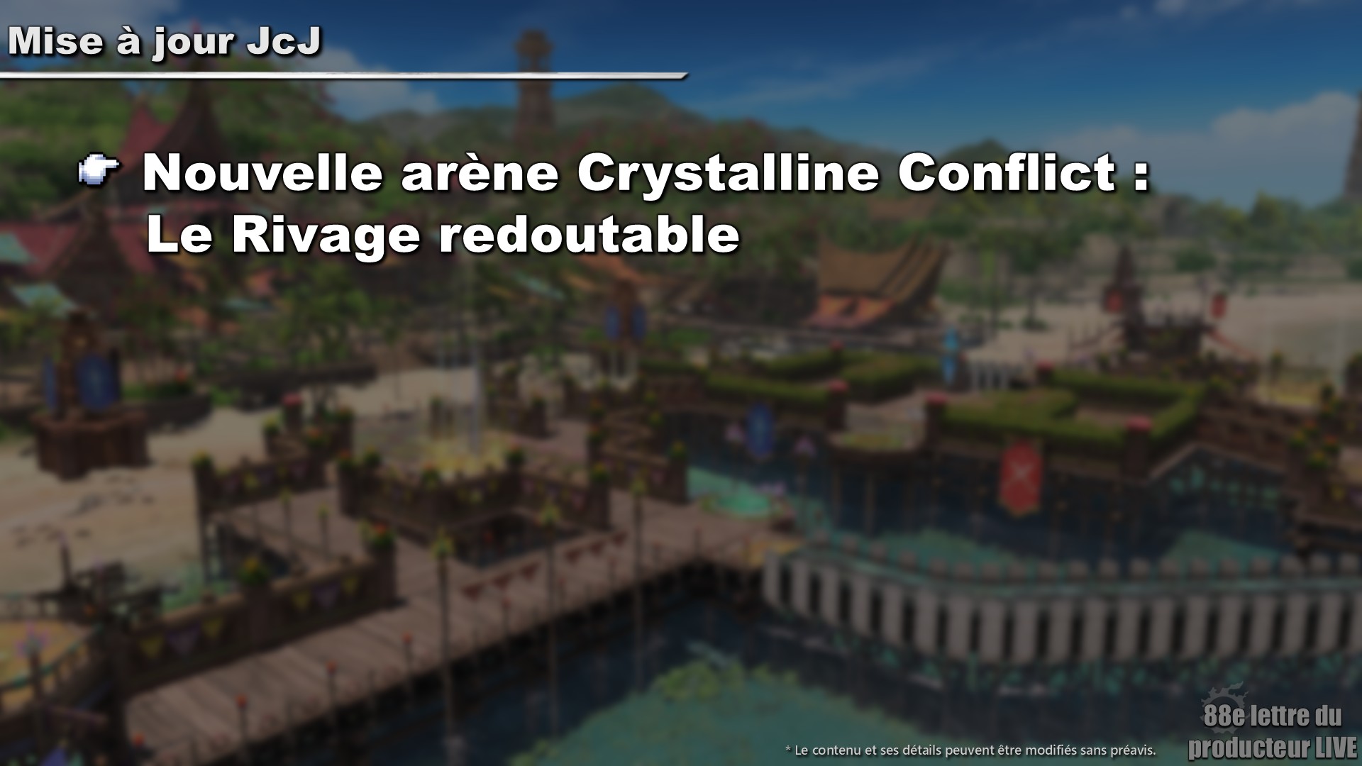 Et ce n'est pas tout puisque nous avons eu droit à un aperçu de la nouvelle arène de Crystalline Conflict, le Rivage redoutable ! Nous avons aussi pu voir comment fonctionne désormais l'action "Dépuration" ainsi que les nouveaux effets visuels dont on a parlé plus haut, alors allez jeter un coup d'œil !