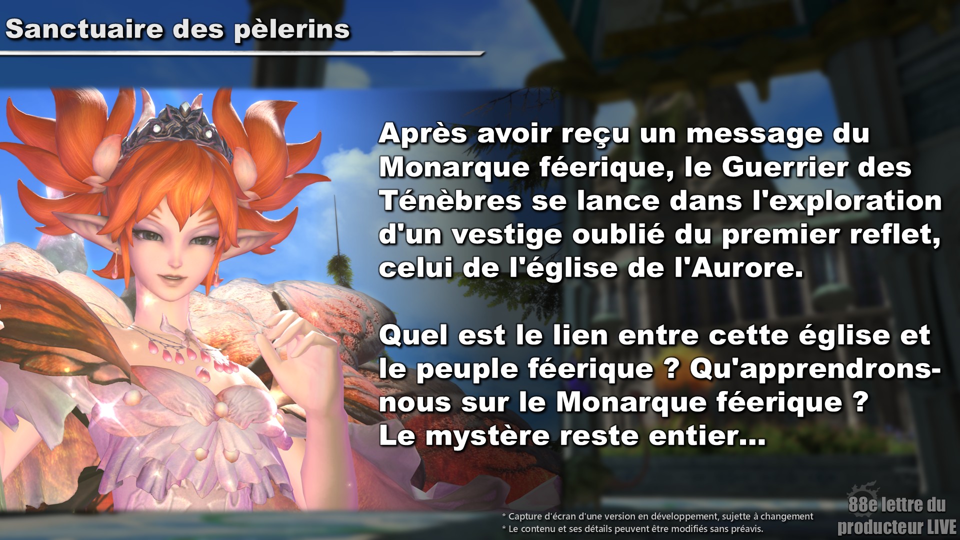 Comme mentionné plus haut, la mise à jour 7.3 marquera la fin de l'histoire qui a commencé à Dawntrail. Son contenu est assez conséquent et nous vous recommandons donc de prévoir suffisamment de temps pour le découvrir !