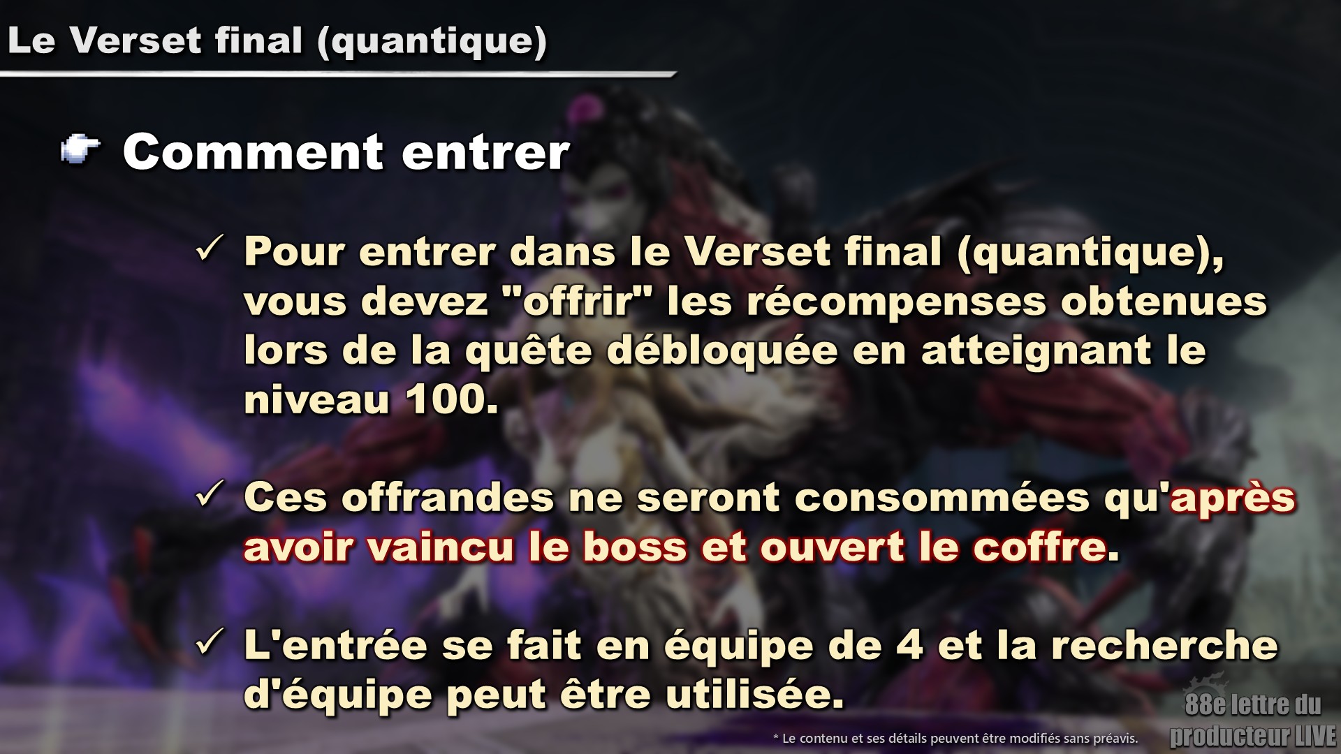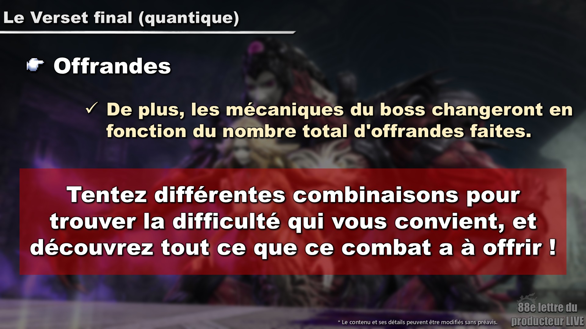 Nous avons présenté rapidement quelques nouveautés qui arrivent à la mise à jour 7.3. Plus de détails sur ces contenus vous seront donnés dans la suite de ce résumé, notamment des séquences en jeu, alors soyez attentifs pour la suite si ça vous intéresse !