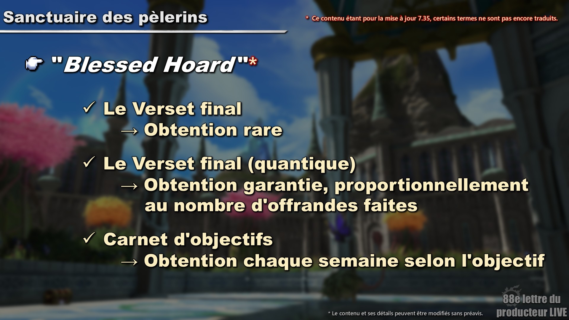 De la même façon, nous avons donné un bref aperçu des contenus de la mise à jour 7.35.