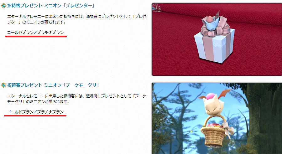 先日リニューアルした公式ページではプレゼンターがゴールド/プラチナ、ブーケモーグリがプラチナのみになっています。