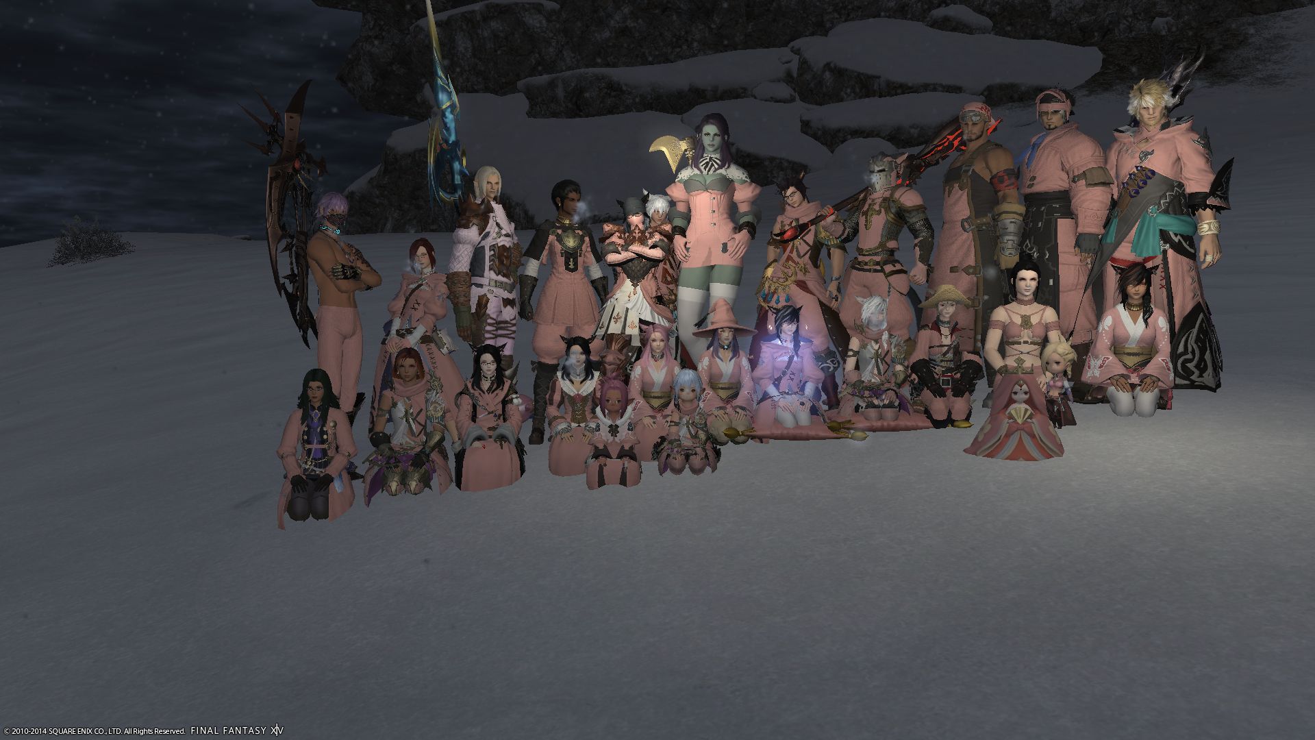 We realize that some people have the lowest level subscription to FFXIV which allows only one character/server to be created. If this is the case dye your armor pink, dye your hair pink and show up! :D