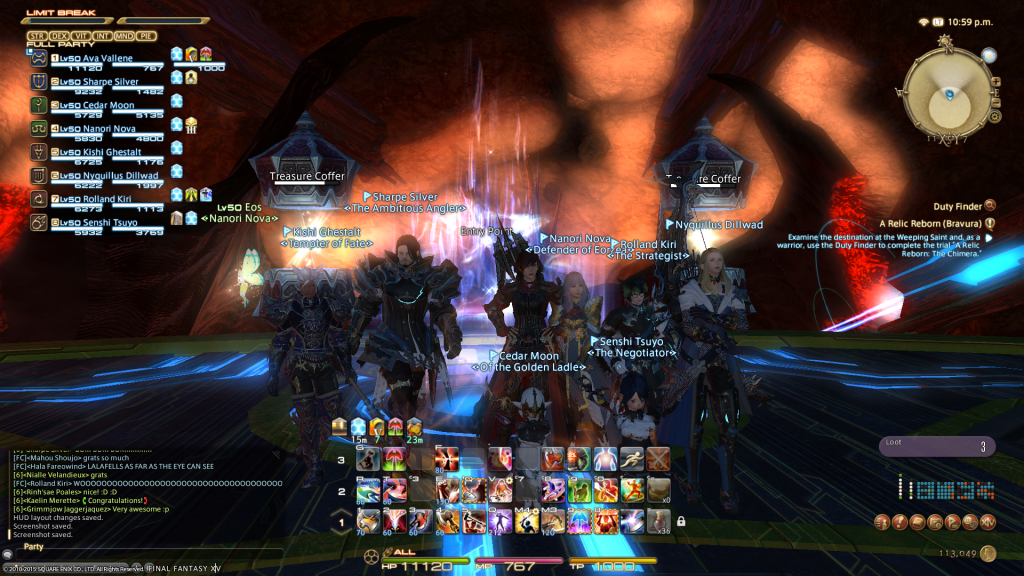 We've had some issues with overall progression this expansion due to having difficulties until the last 4 weeks of forming the static with members inside the FC. As of THREE WEEKS AGO we were T12 clear with full FC group and T13 Prog. Sorry we did not take photos, I've been on vacay the last 3 weeks and totally fried and forgetful, even this week we forgot to take the T12 kill shot as we gad 7/8 in zone by the time we remembered. We went into T13 and took a pic there this time. Hopefully you can backdate our kill, Tribe is back, recruiting and back to work in final coil.