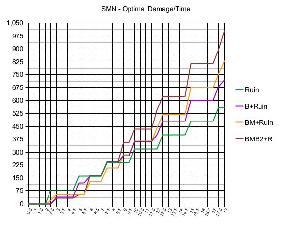 Opportunity cost is 3 ruins, which is upfront 240 potency. We then subtract the simulated dot damage from the first 3 GCDs, then divide by the total dot potency to see how long these dots will take to equal the deficit. Turns out to be about 1.65 ticks or 5 seconds, so 2 GCDs after the 3 GCD setup.