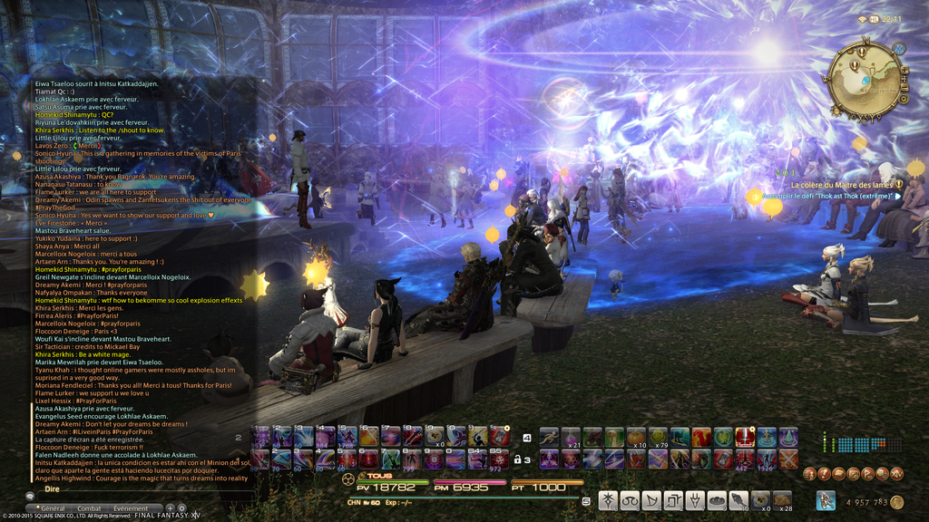 People in Balmung holding a Vigil for the Paris attacks tonight. There's been such a great out-pour of support that my game can't even load a third of the grouping.