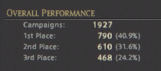 Anyway, I have about 1010 games played, 550 wins, got the 3 garo mounts, etc. So I'm not whining about having to put efforts into things, I'm just tired of having to rely on people that do not care/won't listen to grind things. So please try to think of different kind of achievements in the future. You'd think that "winning" would be enough to have people actually try, but it's not.