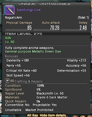 I did see someone who went a bit further though and had an anima with stats evenly divided among all the substats (71crit 71det 71sks 71 parry or something), which makes me wonder if there's a minimum amount that needs to be on the item in order to trick the game into syncing it like a real stat.