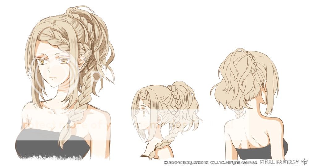 Personally I'm kind of glad the side pony won instead of the braided pony. It's cute but not over the top, and most importantly it goes with all kinds of hats. Since we were voting for an in-game hairstyle as well as creativity, the practical side should be considered. When using wizard/bard hats, the side pony will most likely show, whereas the massive back pony and braid would probably not be visible the same way as the female roegadyn pony tail is not. Circlets show better on the side pony style. The highlight placement is also quite nice on the winning style but the braided style never had them showing.