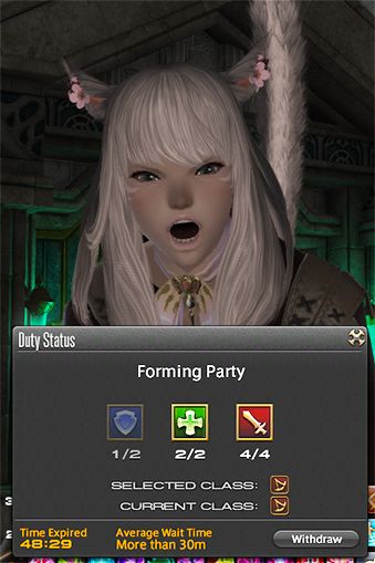 As main DPS,this is the truth.Say you have an hour on your hand, which is enough to run a dungeon, so you queue up and then... the queue takes ages. You're nervously keeping an eye on the clock, maybe begin to get ready for work and when the queue finally pops you have to choose if you can make a dungeon before work or not.