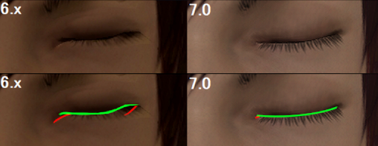 「目尻側 b」の睫毛が、6.xのように長くなっていない。
