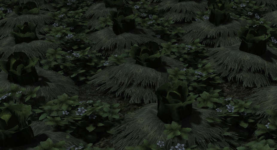 The mixture of straw and tiny flowers is really nice, and the heightend places to plant things (Krakka roots in the picture) make the crops stand out more