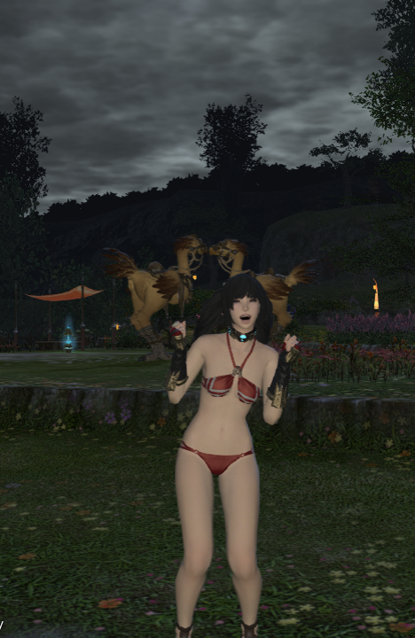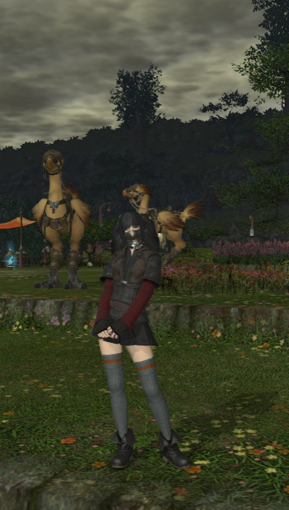 My Dragoon vanity set (Right side) with my static PLD in his vanity on the left. Lalafell chocobos are so tiny lol.