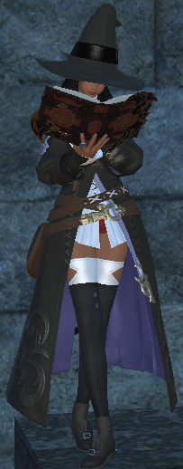 South Seas Talisman, Sailor Brais, Lord's Clogs. Left the HA casting gloves as is. The pants go along with the hat kinda nicely I think.